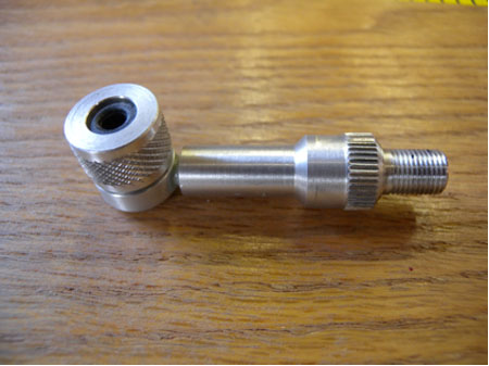 The descriptive term “crack pipe” is often used around the circuit to describe this 90-degree adapter. When attached to the head of a pump, it easily fits inside the valve hole opening so you can properly inflate the tire.