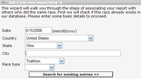 2. Adding a Race Just click on the 'Add Race' link to go through a quick race wizard to determine if this race and it's details is in our system.