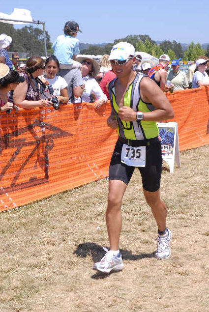 Warm down: My warm-down included drinking water and crashing on the grass under the shade. I really didn't want to get up from the ground but sitting in the air conditioned car sounded a lot better. What limited your ability to perform faster: As I stated earlier, the under-nutrition and lack of training in this level of heat is what I believe limited my ability to perform faster. Event comments: I was excited to finish the race but couldn't stop thinking about the disappointment in my performance during the run. I had a personal best time on my swim and a great time on my bike ride but unfortunately lost all those gains during the run. At the end of the race I was totally set on never doing this race again but now that a week has passed and I had time to reflect back on the race I actually might do it again next year...we'll see... Last updated: 2009-04-10 12:00 AM