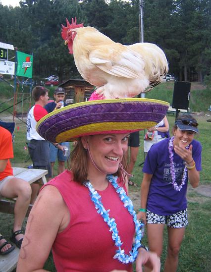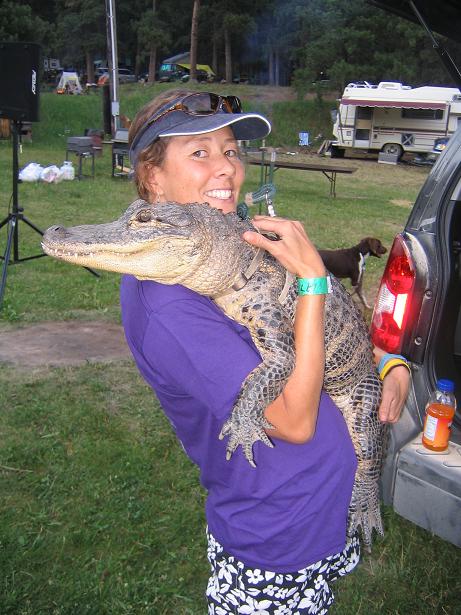 Comments: Shortly after starting the run, a guy in the 40-45 division blew past me on the first hill. I could see there was no point in trying to catch him. I just tried to keep my slow plodding run going. I would try to kick it in a notch on the second lap. Halfway through the first lap I was passed again, this time by a tall, skinny guy in my age group. He built up a 30 second gap rather quickly, but as we started rounding the south side of the lake I noticed it was not increasing. On the steep rocky section of trail at the far end of the lake, I passed a racer who was clearly not accustomed to running this type of terrain. He was picking his way slowly down the rocks, while I still managed to trot, although my legs were feeling like rubber at this point. One more time up the steep hill to start lap number two, and I was hurting. As the descent opened up into a beautiful meadow I suddenly saw a group of five runners ahead. A second later I realized that they were actually on their first lap, not their second, so I really couldn't "catch" them. Just as we hit the lake again, a 29-year old blew past at a pretty good clip. I tried to stay with him, but my legs just didn't have it. I survived the final rock garden and finished it out. The next two guys in front of me were less than 40 seconds ahead. What would you do differently?: Nothing, except more run training of course!  Post race Warm down: I immediately grabbed an apple juice and sat down. That was done quickly, and I started in on a large bottle of water and a Sunkist. Next was the beer. In retrospect, I must not have drunk enough on the course! I cheered on Mark, Molly, and Lisa as they crossed the finish line. Mark took 4th in his age group, while Molly and Lisa each took first in theirs. Molly was 2nd overall Female, and had actually been in the lead at the end of the bike. We all jumped in the lake to cool off (and clean off the bits of cow poo that were cemented to various parts of our bodies) and then we enjoyed a delicious barbecue provided by the race organizers, complete with plenty of Bud Light and Busch. For the entertainment portion of the evening, an eclectic old guy brought out his collection of animals, including a chicken, an alligator, and a 15-foot python. Everyone gathered around to enjoy the spectacle. We finished the evening with s'mores around the campfire. What limited your ability to perform faster: I definitely needed to drink more on the bike. I actually tried near the end of the bike section. We had been riding in cow terrain, and the last time I grabbed the hose of my Camelbak and stuck it in my mouth, I made the unhappy discovery that the nozzle was covered in cow poo. That's when I decided to stock up on fluids at each aid station on the run instead. Event comments: This was a very well-run race in a gorgeous setting. It may be off the beaten path, but the Black Hills are a place that should not be missed. We found some excellent singletrack the next day for a great two hour ride before making the drive home. Recommended stops - breakfast at the cafe in Cheyenne Crossing, mountain biking at Old Baldy or Big Hill trail systems, camping at Iron Creek Lake. Things we didn't do (but would be high on the list): see Mt. Rushmore, rock climb Spearfish Canyon and/or Devil's Tower and/or the Needles, fishing, cave exploration (there are many). Last updated: 2005-07-19  12:00 AM |