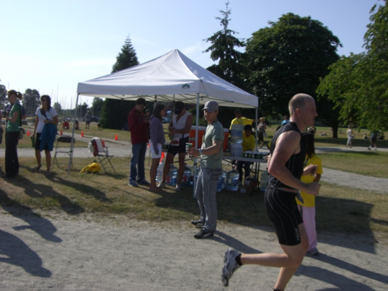 Comments: The run was generally good, despite a nagging calf injury that has pretty much kept me running for the past month. km 1 and 2 felt pretty rough and slow. After that I felt pretty good and was able to pick up the pace a bit and get past about 10 or so people who were holding on about 100m or so ahead of me. The final km was hard but fast and I had a nice pickup in the finishing chute. What would you do differently?: More consistency in my running, do some brick workouts and try to stay healthy before the race. ![]() Post race