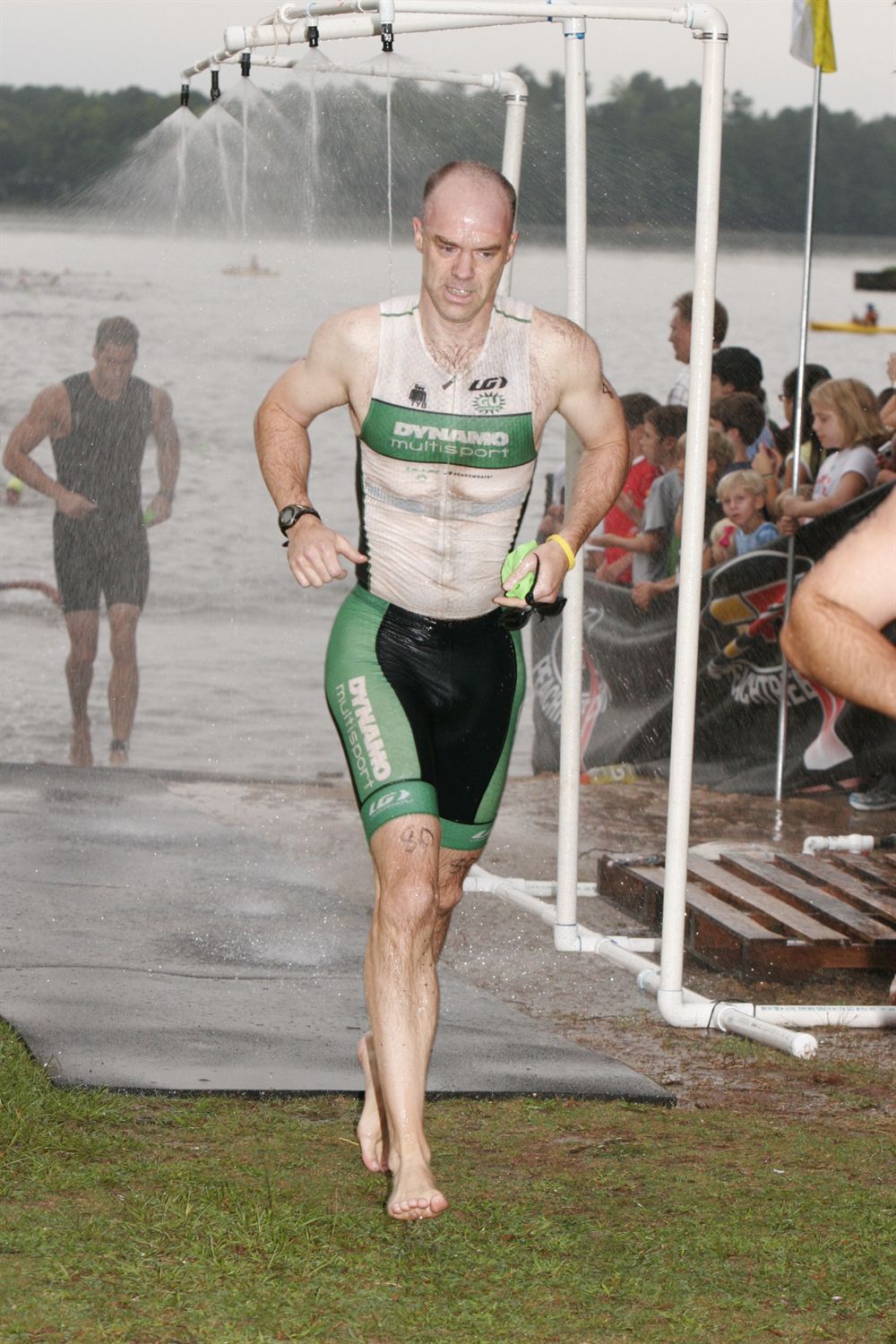 Comments: I lined up at the front of the race. I wanted to catch a good draft. Not. I knew within 200 yards this was not going to be a great day. I did not feel good but just kept plugging away. With about 100 yards to go, I got a massive drink of the lake and it stopped me dead. I just wanted to get done at that point. My HR was jacked coming out of the water over 165. 4th - 8th were all within :15, so I will call this a good swim. What would you do differently?: I could have tracked a little closer to the buoys. Also, I needed to RELAX. I seem to really tighten up when I have not done a OWS in awhile. ![]() Transition 1