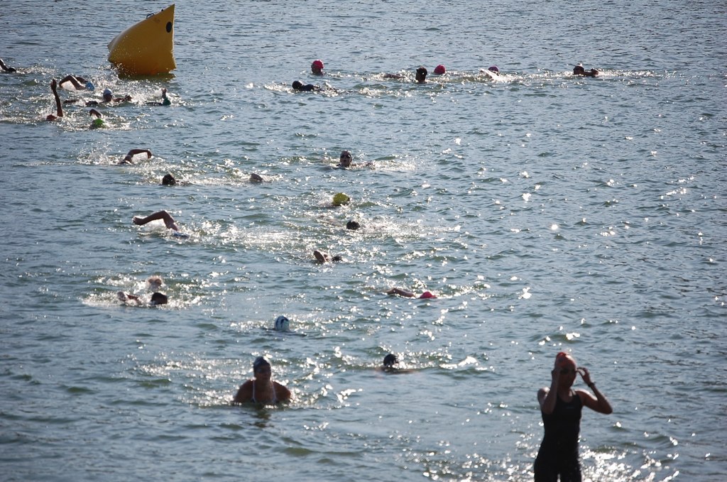 Comments: i was out of breath swim as per usual , just focused on exhaling a lot so i would take it more air . Also focused in my glide and form and sighted well . The big yellow buoy was visible every time i looked . I stayed out of the traffic by swimming on the right and swam straight to the buoy , made a left turn and up the beach , its a steep run up but i jogged the whole thing . What would you do differently?: the more races i do the more confortable i get . ![]() Transition 1