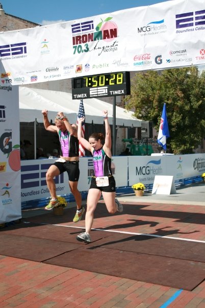 Comments: Haha - never in my running career have I ran 13 min miles but considering all that I had going on and the fact that I was dehydrated I am very pleased with how I did. The run was the worst leg for me and where I struggled the most. Had it not been for the conversations I struck up with other runner and my coach running with my I don't think I would have finished the race. I though ran a majority of the course - if you want to call it running lol . . . it hurt more to walk so I jogged at a steady pace with my coach to make it across the finish line and sure enough I did :) Even though it was my worst run ever - it was the best part of the race. I really enjoyed talking to different people to stay motivated and to help motivate others who were not feeling so hot on the run either!!! You got to have fun with it or it's not worth doing!!! :) I kept a smile on the whole time even though I was completly miserable haha :) What would you do differently?: not be sick prior to the race lol ;) ![]() Post race