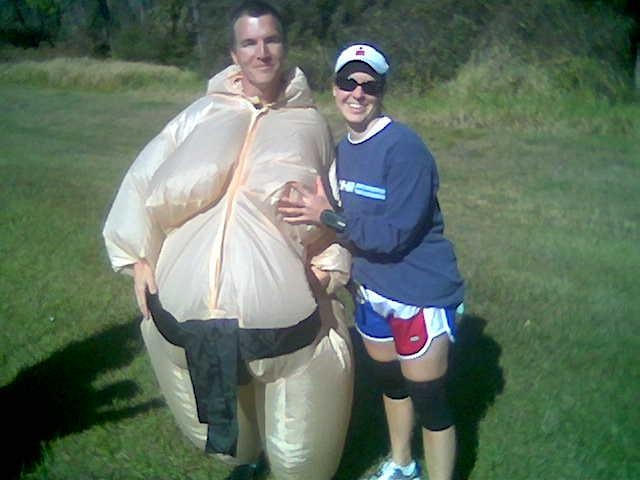Warm down: At the finish Haley went straight for the medical tent to get ice for her knees. We found Jess and Chippy(ChipmunkHeart) along the fence and got our medals from the day before so we could have them all in our finisher photos. Got our Goofy medal and the collection was complete. Made the long walk to the car and laid out all the stuff we had picked up along the way. I can't believe we finished with that much more clothing and food than when we started! Drove back to the hotel to shower and got the world's best foot massage from Chippy. THANKS CHIPPY! Grabbed some lunch from Friday's and a few beers from the bar downstairs before we had to head to the airport. What limited your ability to perform faster: Haley's big ass. Event comments: Most of this course is pretty boring but the sections through the parks are fantastic. Running with a friend really made things alot more entertaining over the long haul. I'm sure I'll be back, but I'm not in any rush. Last updated: 2005-09-04 12:00 AM