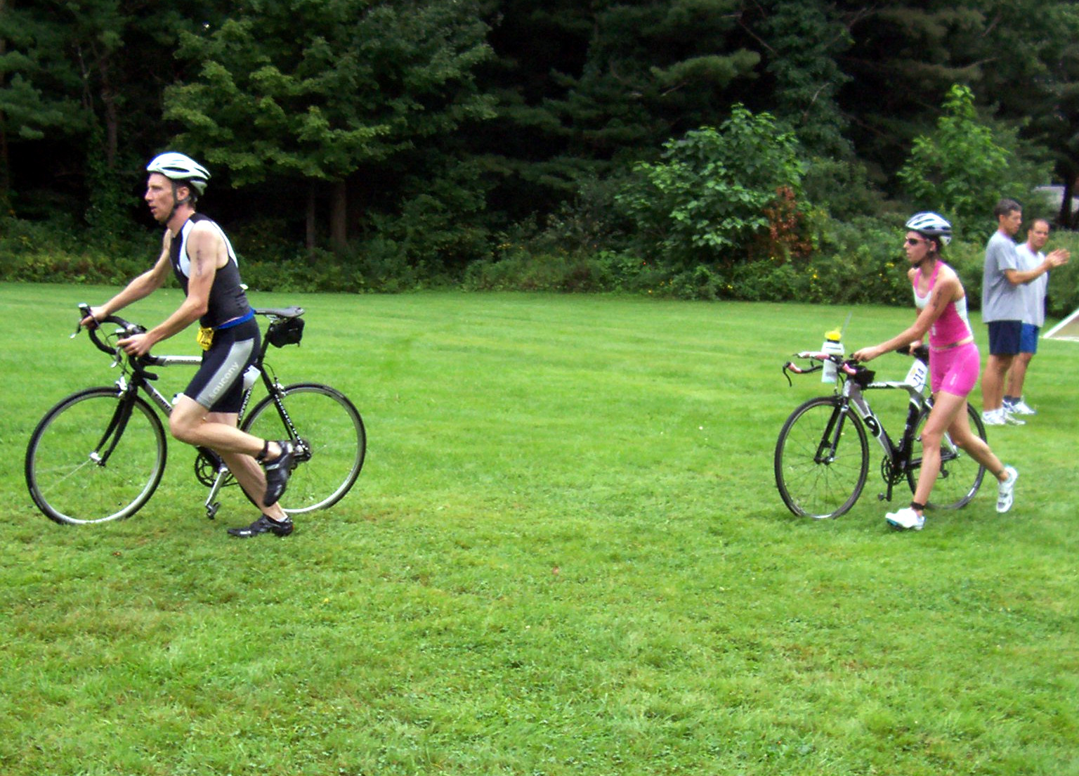 Comments: I just had way too much fun on the bike. I couldn't stop grinning form the moment I hopped on. I just love it!I kept it under control the first few miles, letting my legs warm up. Once I got onto rt. 44, I just started to hammer. Passed a bunch of men, and played leapfrog with a few until the turn into Canton. I dropped most of my leapfrog buddies on this gradual climb. I kept it in the big ring and just tried to pedal smoothly until the big hills. Then, i dropped it into the little ring and cranked up, and up, and up...Those last few miles are killer. The last big hill, I stood up and cranked over into a screaming downhill. I got a little nervous here and braked, and immediately felt my back tire lift odd the ground!!! Well, I let go of the brakes and continued on, luckily didn't endo! Arrived back at Brodie Park the 4th overall woman. What would you do differently?: Nothing, really, It was a great ride and I had a blast! I;m really glad I rode the route with HEAT the weekend before so I knew what to expect. ![]() Transition 2