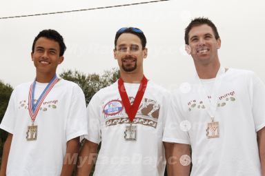 Comments: Strong run. I pushed my way up to the front of the start line and within 50m I was in the lead. By 200m I settled down a little and slowed my pace a bit. I figured I'd just run fast enough to stay in front so I adjusted my pace to hold the lead but nothing faster...it felt slow to me but I wasn't going to waste energy that early in the race so I just coasted. Most of the footsteps behind me faded away...maybe 3-4 people still hanging on. About 1 mile in a young kid zipped past me and I got on his heels. He was pushing the pace a little and it felt like we were right about where I thought I could maintain for the rest of the race. From this point out he opened up maybe 25m on me every mile. I talked myself into letting him go. I knew I was running the right pace...anything faster and I probably would have faded at the end. I figured, either he's going to hard and I'll get him down the stretch or he's just a faster runner and he's gonna win...I just had to run my own race. Every once in a while we'd turn a corner and I could see the closest guy behind me about 75m back...he didn't seem to be closing. 2 miles in is where you hit "Suicide Hill". It's a 1.5 mile continuous climb up a ridge. My strategy here was to keep the foot speed up and take small steps. Trying to power up this monster would have just burned my quads out. I just kept thinking about how I ride up steep hills keeping the cadence up and just spinning. Seemed like forever but eventually I made it to the top which meant it was time to go back down. Long steep downhills are tough on the legs and feet. I opened up my stride and tried to just let my legs spin free. I was on the edge of loosing control for a good 3-4min but I knew that everytime my foot hit the ground I was resisting gravity, slowing myself down, and stressing my muscles so I just let it fly. Once I made it down I had a chance to relax a little and cruise on some flat ground (aside from the mud pits and climbing wall). The kid in front was still in sight but had a good 100m on me and seemed to be just as strong as me at the end. When I hit the final super steep 100m hill I knew I was almost home. Just as I crested the hill I saw the water truck coming around the corner. Seems I beat them to the spot...they were about to open up the fire hoses on that dirt hill and make the climb miserable for the other 3498 people behind me. One last steep downhill and I turned the corner for the finish line. There was a big mud pit maybe 50m long and they had a set of bleachers set up on the side. I wish I could have enjoyed it more because there were a few hundred people yelling and cheering me on. i didn't know how close the guy behind me was so I just focused 100% on getting under the ropes strung about 2ft over the mud, over the dirt pile and pouring all I had left into that final 150m run down the grass to the finish line. I got a peek over my shoulder with 50m to go and realized that there wasn't anyone close so I shut it down and coasted to the finish...that's probably the only thing that kept me from puking at the end. What would you do differently?: Nothing. Considering that I didn't train specifically for this race I did the best I could. ![]() Post race