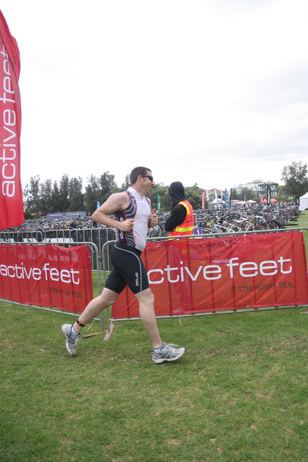 Comments: Holy cow was it choppy. 1m wind chop made it pretty difficult swim. I copped a couple of big mouthfuls of water and the waves made it a necessity to take my time and check my direction. I stopped a couple of times to re-orientate myself and catch my breath. I lost some time while doing breast stroke but think it was necessary. What would you do differently?: Hopefully it won't be that windy / choppy again, but if it is, I will try to push through it without stopping. ![]() Transition 1