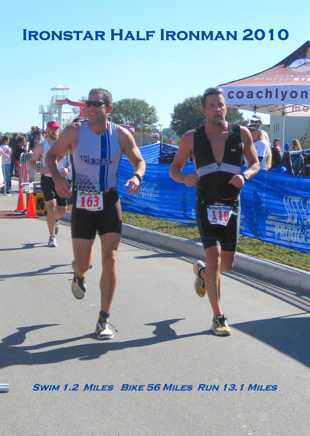 Comments: i love to run so i was ready to get off the bike and get after it....my longest brick during training was a 50 mile ride and a 5 mile run so i left the last 8 miles a mystery for the race...ran 13 miles on training runs and left the .1 for race day :) i came off the bike feeling good and stuck with my original plan to hold about 10 min miles.....my training partner gaven passed me about mile 20 on the bike so i knew i had some time to make up if i was going to catch him so i stayed just below 10's thinking i could make up a little time...the first loop felt relly good and the second was just about sticking to my fluid intake and keeping my pace and HR in check...i got a little emotional after the second loop while passing the bagpipes because i knew the next time i came around that was it...i would have completed my first HIM! at mile 10 where gaven and I's cheering squad was, i was told he was only a min ahead of me so i kept on trucking...i saw him at mile 11 and caught up to him about mile 11.5...we have trained together and started this triathlon journey august of 2009 (because he talked me in to doing a sprint 2 weeks before it) and have been there thru thick and thin during this process so when i caught up to him i pat him on the back and ran right next to him just like we were training at Memorial and we shot the breeze all the way to the finish and crossed it at the same time....what a great way to finish our biggest accomplishment yet!!!! What would you do differently?: nothing really...my avg heart rate was only 7 bpm more than when i was on the bike..i might could have bumped up my pace a little bit...but i didnt want to experiment too much since i hadnt done this distance before...there is always the next one! ![]() Post race