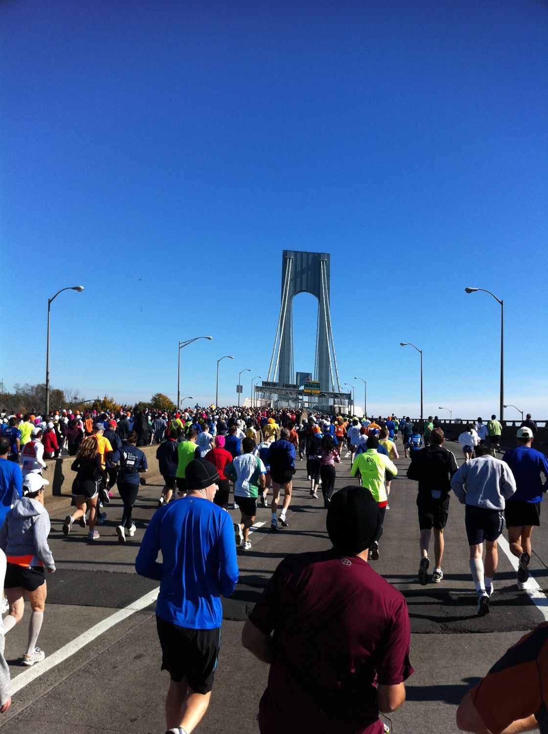 Wheaties fuel in the morning. Clif Energy bar 2 hrs before the start. Gatorade all morning. Maybe a little too much because I needed to pee right after the bridge.