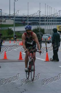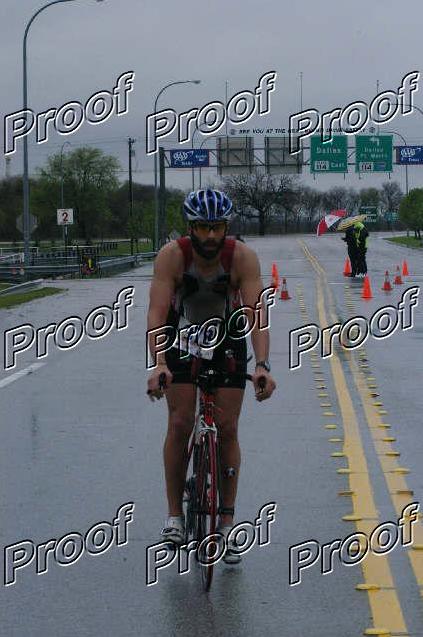 Comments: Carefully clipped into my pedals and took the first corner very easy. I haven't done much riding in the rain or on wet roads so this was all very new to me and I was worried about wiping out. Luckily it didn't take long for me to get over my nervousness and get into the fun of things. A full off-season had done wonders for my cycling. I was at the front of the middle of pack and I had every intention of joining the leaders. I quickly got up to speed and then found out that "up to speed" on fixed cranks now meant 25+MPH! I came to the first straight away which had a nice tailwind and easily powered up to 30MPH. Of course since this was a circular course around Texas Motor Speedway I eventually came to a straightaway with a stiff headwind, but I still managed to pass a few people here. Second loop was just as good as the first and I was feeling great. The slowest runners were just now getting onto their bikes and I gave what encouragement I could to them as I passed. I felt alot more comfortable this loop and just tried to enjoy myself and mentally get ready for the second run. Slowed down to a crawl to come around the last corner and gently stopped in front of the timing mat to ensure my safety. What would you do differently?: Slow mount and dismounts hurt my time but it was worth it to be safe. ![]() Transition 2