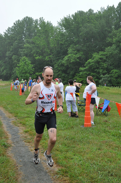 Comments: This was a run in/ stand on shore start. I stood back some and when they started us a lane opened up and I went for it. I had to go hard to get out but it worked this time. Some bumping but nothing too extreme. After rounding the first bouy my sighting got bad and I was drifting to the left and unable to draft. After I rounded the 2nd bouy I headed home strong. Time includes time to swim exit mat What would you do differently?: good overall swim for me and am happy as I am seeing some improvement-- just need to keep working ![]() Transition 1
