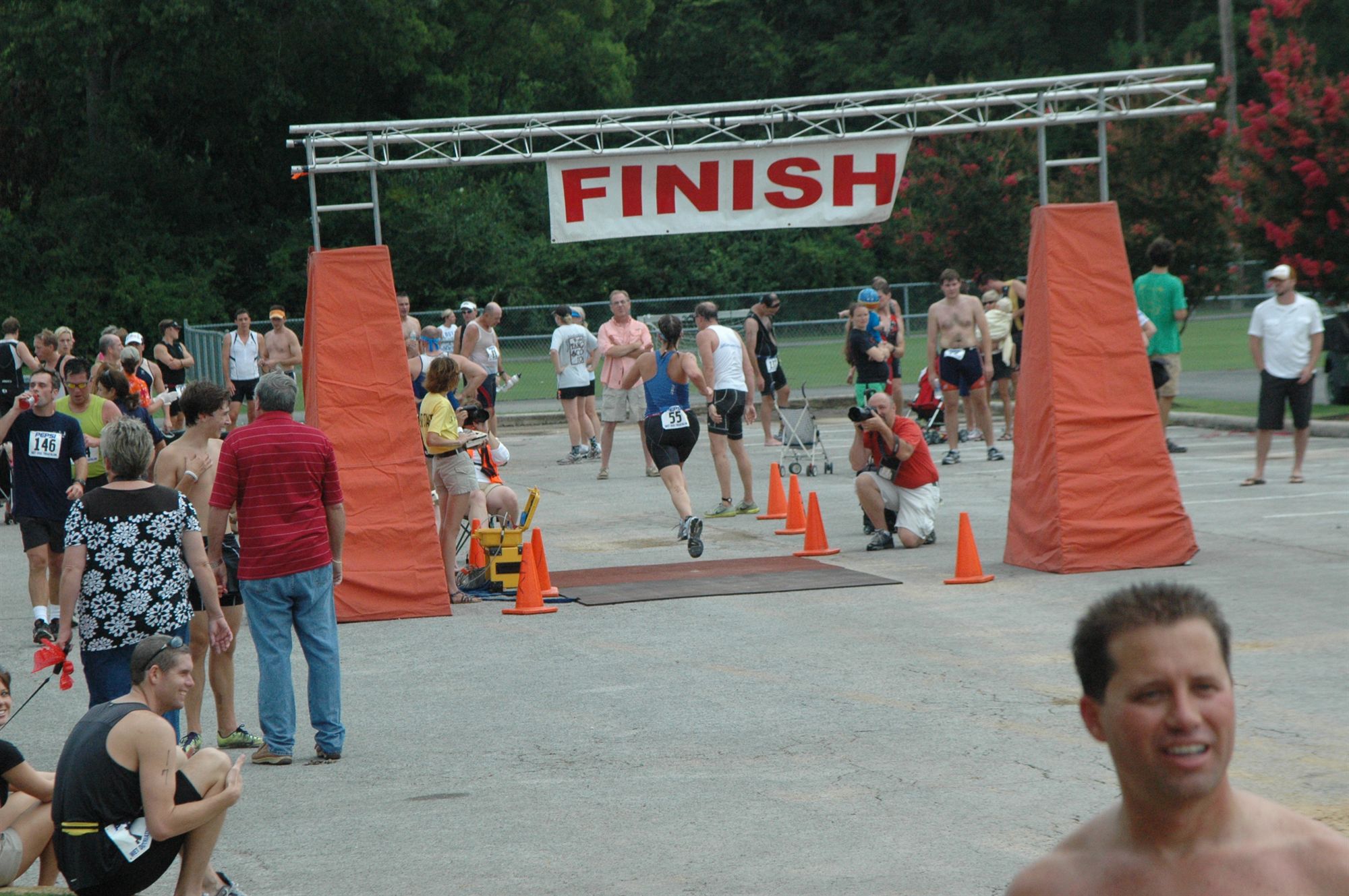 Comments: My landmark in the transition area was a bike with a flag on the back of it (among other things), and it was gone when I got back, and a different one on the row over! What are the chances! So I ran up the wrong row, and couldn't find my place!!! Rookie move. I was freaking out. Finally hubby yells "RACHAEL!!! OVER THERE!!!!" Fortunately the racks were tall enough and there was a gap close enough that I could just take the bike under the rack. I was so pissed that I threw my bike up on the rack and mashed the mess out of my finger! DANG IT!! The rest went normally, but I was really pissed coming out of T2. AG: 5/26 OA: 46/160 If I had raced AG: 10/19 What would you do differently?: I saw a lady with a giant pink sparkly flag marking her place in transition. Maybe I should do that! Haha! But seriously - chose non-moving landmarks!! ![]() Run