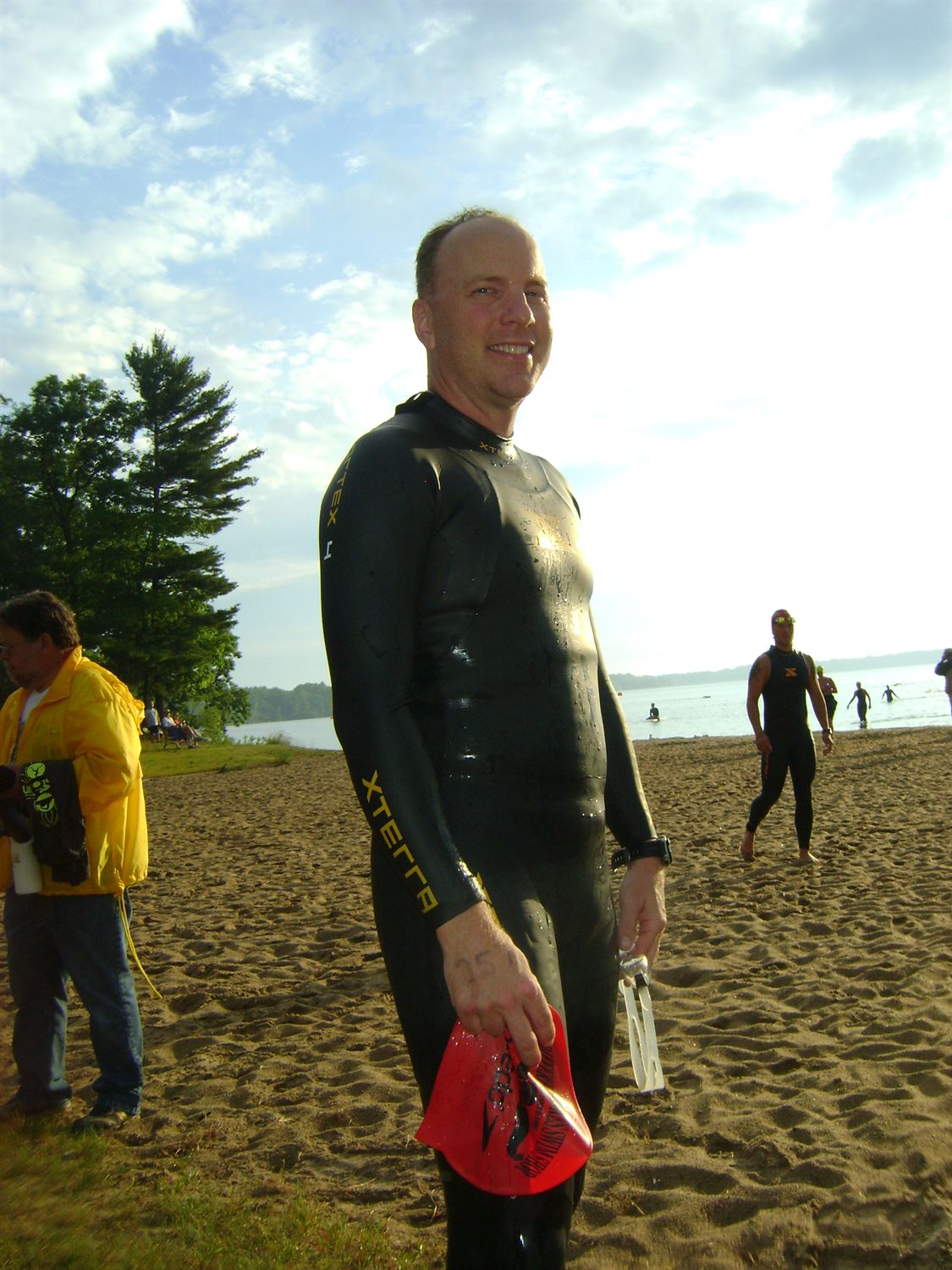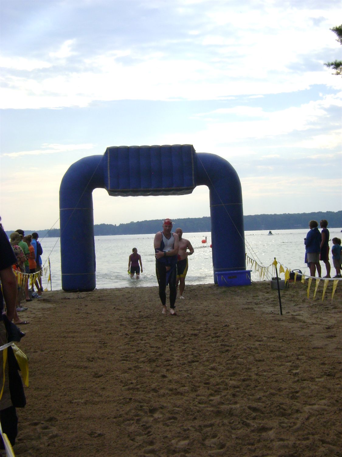 Comments: For me this was a good swim. I felt strong and in control the entire time. The wetsuit was a good safety blanket, but I really didn't need it. Navigation is better now that I make sure I sight on something on the shoreline to use as a guide. I waited to a count of ten at the start to let the water clear, and that helped. I actually drafted for a little bit, which was a first for me. Finally, I got tired of running into people and swung wide to find clear water. After that it was just stroke and breathe. I wish I had taken my Garmin, as I am sure my long, outside route added a good bit of yardage to my overall distance. Considering that in December I was taking swim lessons, I am VERY happy with this race. What would you do differently?: Not much really. I may start looking at staying tighter on the line to reduce my distance to the bare minimum, but at the same time I do like clear water. ![]() Transition 1