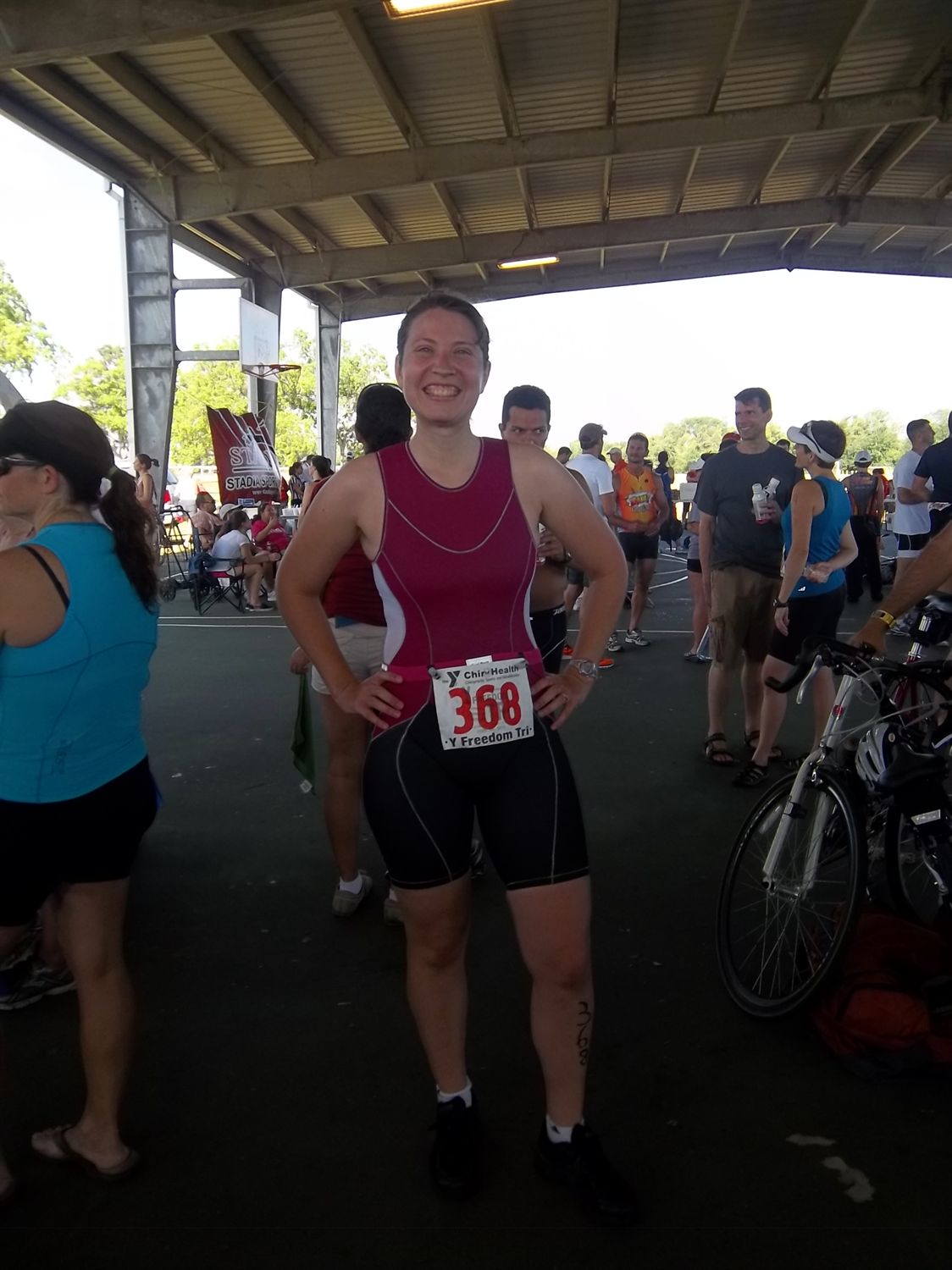 I got there at 5:30. Had a cup of coffee before I left home. I ate a banana just before the swim started, but then I waited about 40min for my pool start.