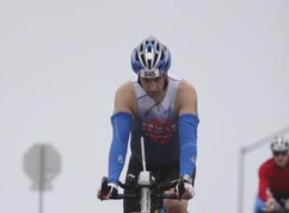 Comments: Long run around T1 and then back in. Grabbed by gear and was peeling my wetsuit off. Had some trouble and struggled a little, but then got the other leg right off. Dumped out my bag and tried to pull on my compression sleeves and arm warmers -- not easy on wet skin. I should've brought a towel. Got my shoes on and then saw my socks. Dammit. took shoes off and put socks on. Did not put my chamois butter on (I would regret later), but got ready to ride. Threw 2 bananas up on my handlebars and headed out. This would soon bounce off and be gone forever. Dammit What would you do differently?: Practice getting out of my suit. ![]() Bike