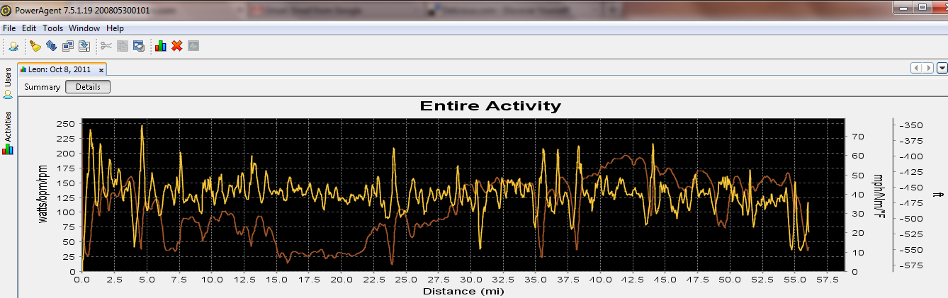 Last evening's dinner was spaghetti w/ meatballs (pasta good, meatballs bad -- gave me gas on the bike), water and Clif bar next to bed (ate some during middle of night). Woke up early (anxious) at 4:15 AM. Breakfast was Steel-cut Oats w/ P-nut butter and honey, and Apple; 20 oz. Infinit on 1 hr. drive to course (got there at 6:15, still could see all the stars above), banana 30 min. before start.