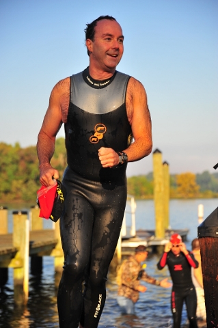 Warm down: Hugs and kisses from the family, walk around for 5 min., 20 oz. Infinit recovery, pizza, water, Oreo's, water. (Put on some clean clothes in transition after wiping down w/ baby wipes). What limited your ability to perform faster: Nothing. Event comments: I cannot believe I finished an HIM, let alone beating my goal by 20 minutes!!! SetupEvents always puts on a great race, and the volunteers (and especially the Police on the swim, bike, and run portions) keep the race enjoyable and safe. There are so many kind and generous people to whom I owe my deepest thanks: I could not have made it to the starting line without their help. Coach Beth, who turned my pathetic swimming into a fast, efficient technique. My neighbor, Andy, who got me into triathlons and always is happy to give me some advice on training and race prep. My PT, Robert Gillanders, who got my achilles back in shape in record time. The wonderful BT members who always had good advice for the zillion questions I always had, including Jorge who had a terrific winter bike program that laid the foundation for this strong season. BarryP and all his BT friends, who saved me from my running injuries and taught me how develop strong running fitness without injury. Finally, I could not have reached this milestone without the faithful and endless support of my daughter and my wonderful wife, who tolerated the early-morning wake-ups, the endless training hours, the sleepless nights, and my obsessive antics whenever I discussed ANYTHING triathlon, especially if I suffered a setback or injury. Thank you for your unyielding love and support. Update: Pics at http://chessiephoto.com/?q=wh135 http://chessiephoto.com/p10979720/h26e83b1a#h26e83b1a http://chessiephoto.com/p21991687/h30352a16#h30352a16 http://chessiephoto.com/p21991687/h1c2e04fc#h1c2e04fc Last updated: 2011-07-27 12:00 AM