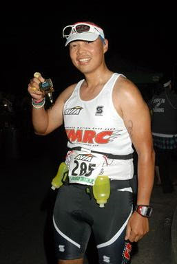 Comments: PEACHES! THE best ironman marathon food! (for me at least) The 1st lap was okay. I spent the first few miles jogging slowly trying to get my heartrate down to around 150-155 bpm. Once I got it down, I continued to jog at my target 10min/mi pace. My plan was to continue to use my clif shots as my nutrition for the run but I had this feeling in my throat that I was going to hurl. Thus I didn't take any nutrition other than water for the first lap. On the 2nd lap, this is where I reached the dark side of ironman racing. Any and every negative thought ran through my head during this lap: -Don't eat anything or else you'll throw up -If I can't take down any gels, then how am I going to finish? -I don't have any energy to run -Will I make it to the 3rd loop time cut off? (you need to start your 3rd loop by 9pm or else your race is over) -Will I finish the race? -Why am I punishing myself like this? -The pain can end now if you just give up Yup, it was pretty depressing...until about mile 14 where I stopped at an aid station. There I decided to try non-astronaut food (aka gels) like PEACHES! Try and imagine having only gels for breakfast, lunch and dinner. Then say you had of choice of having another gel for a late night snack or not having any late night snack at all. What would you choose? Exactly! I have been racing for about 11 hours now and I didn't want anymore gels, so I chose peaches. It's like my taste buds and my brain woke up! It's hard to explain the change that I felt after each some peach slices but all I can say is that it rejuvenated me so much that I started jogging just so I can get to the next aid station for more peaches. It was amazing! I used this peach motivation to get me through the rest of the 2nd lap. Final lap, as I started the final lap, I was able to see the race clock and saw that I could still hit my overall finish time goal! This got me very excited! I calculated in my head how much time per mile I would need to go to finish under my goal. This motivated me, along with the peaches fetish, to finish my final lap faster than the previous 2 laps! I even overheard another athlete say, as I ran by them, "...nobody should be running that fast this late in an ironman race..." :-D I agreed with him, I don't know how I was doing it but I had the energy and was making the most of it. What would you do differently?: I would start with the peaches at the beginning of the run and ride that good feeling for the rest of the run. ![]() Post race