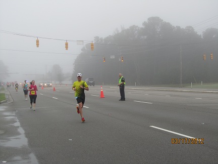 At mile 18 I came across a marathoner that had the yellow arm band we were required to wear after going the marathon loop. Once he saw the 18 mile mark, he just slowed down...In my opinion, this guy was mentally beating himself...he hit the wall at EXACTLY the point the books say you will, which are miles 18-20. I was convinced he mentally hit the wall and that probably cost him a good race.