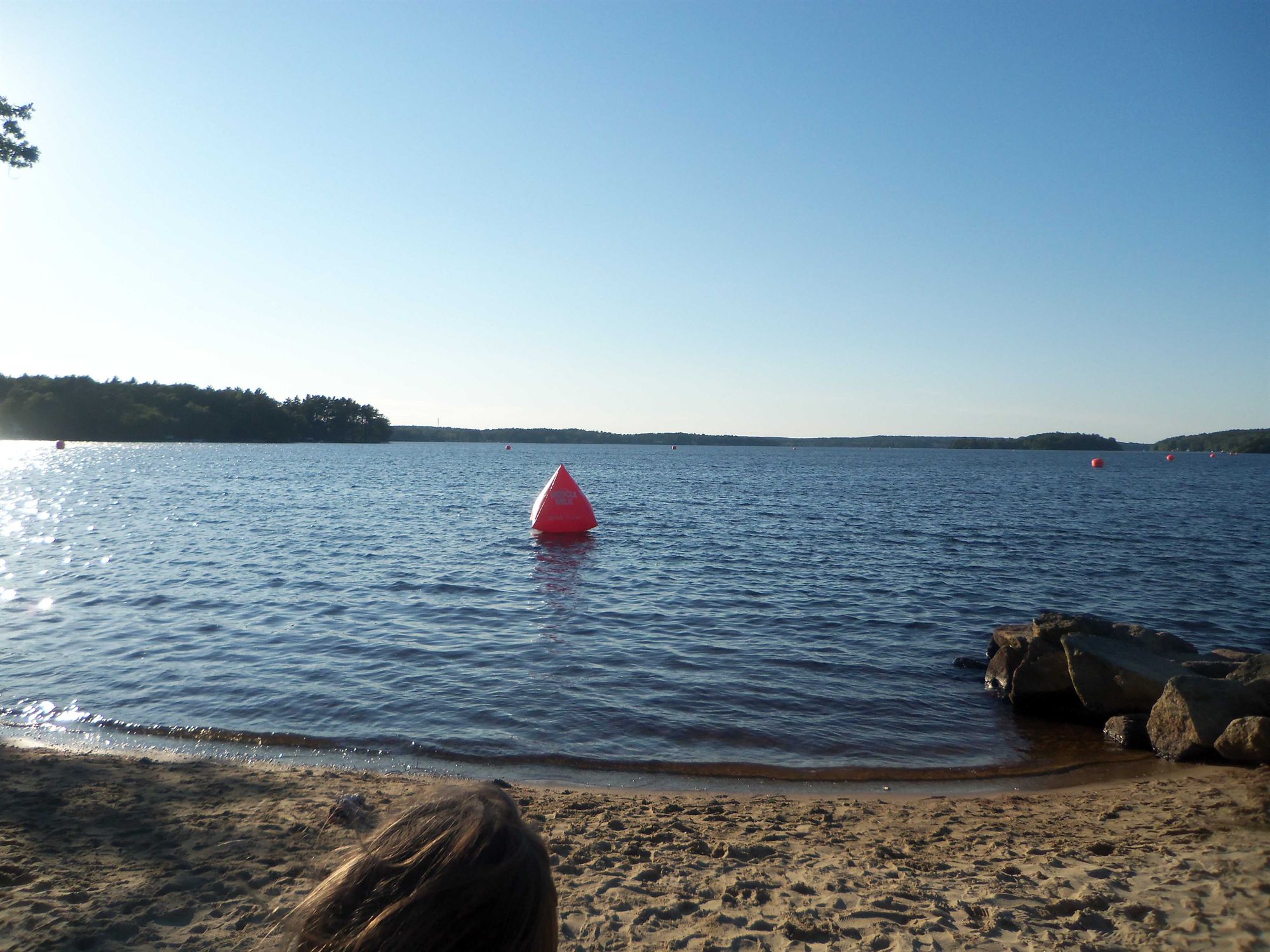 Comments: Started out towards the back close to the buoys...this was the most considerate group of women swimming I have ever encountered. If someone touched you, they would immediately change their course, if someone accidentally kicked or hit you, they stopped and made sure you were okay. The swim out was ok - a little choppy (the wind picked up as the day went on). I felt like I sighted pretty well - was able to swim fairly close to the buoys throughout, made the turn and then the turn back to shore...the current really picked up - pushing the swimmers to the right of the finish line, so I had to adjust by swimming slightly at a diagonal. I finally have learned the lesson for me - quit trying to find someone to draft and swim your own race. I felt pretty good throughout the swim - but I'm thinking a sleeveless wetsuit may be in the cards...I spend a lot of energy fighting the wetsuit - the way it pulls my arm back, regardless of how careful I am putting the suit on. As a result, I don't get to focus on my form as much as would be helpful and I think it could make a significant difference in my speed. What would you do differently?: Sleeveless wetsuit? More time in the pool/lake/pond ![]() Transition 1