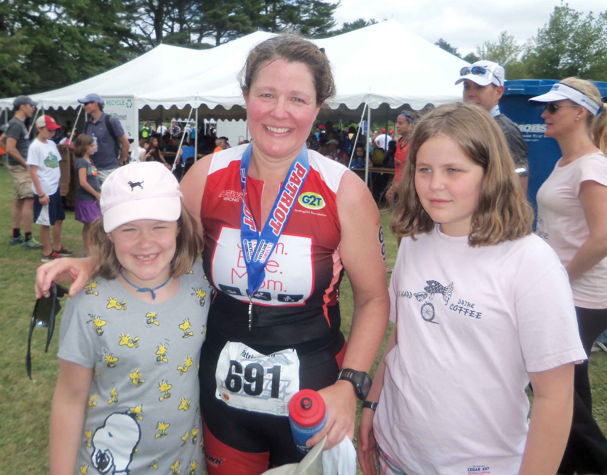 Warm down: Got post race water bottle and wet towel, medal and collapsed into a folding chair to wait for the family. Wiped my face off with the towel (that felt great) and just chilled for a bit. They showed up, hugs all around, a couple of pics and then Matt graciously offered to go get the car. I picked up my transition area, shuffled to the car and he packed everything in. So many thanks to my wonderful family. They took great care of me throughout. Friday night when I got my first look at the swim, I panicked a little and both the girls were so kind giving me encouraging words. On Saturday - Matt was absolutely awesome. He did all the hard stuff and just let me cope. I am so blessed that my family supports me, tolerates me and is willing to go along with all of this. Really a great day. Now I want to do another. Must be the ibuprofen speaking. What limited your ability to perform faster: Age, no athletic ability, working full time while raising a family. Event comments: Fantastic job by the organizers. From the seamless packet pickup/check=in, numbered spots for transition, plenty of volunteers, all intersections well marked, potholes, etc marked on the road, well manned aid stops, friendly encouraging volunteers...well worth the time/effort//money. I would do this again in a heart beat. Last updated: 2012-01-23 12:00 AM