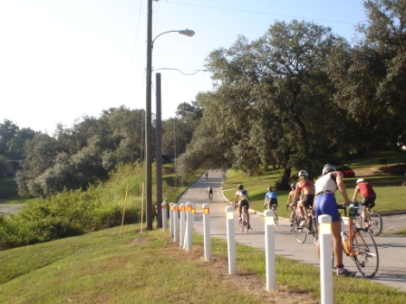 Comments: I started out nice and easy and comfortable. It was very sunny and hot but I just kept going. After about an hour on pretty nice roads with very little hills my avg. was 21.3, which I was happy with. At about and hour and a half I ate my kashi granola bar while on a slight downhill for a little while. Then there was a big hill, and being from Daytona it was steep but I remember people saying how steep sugarloaf was so I figured I'll get up and and be done. As I was climbing a guy doing really well said comon' just 3 more! Turns out there were more and more big hills to come. The dreaded sugarloaf was bad, but I had steam at the top still and passed quite a few people as they put too much effort in the begining of the hill. At the top there were people with drinks and I had a water that someone handed out. The way back from sugarloaf people were going slower and I took it easy too. Still a half marathon to go right? What would you do differently?: Take in more fluids. I drank two bottles of gatorade and at least two more waters, but it was soooooo hot that I should have taken in even more. ![]() Transition 2