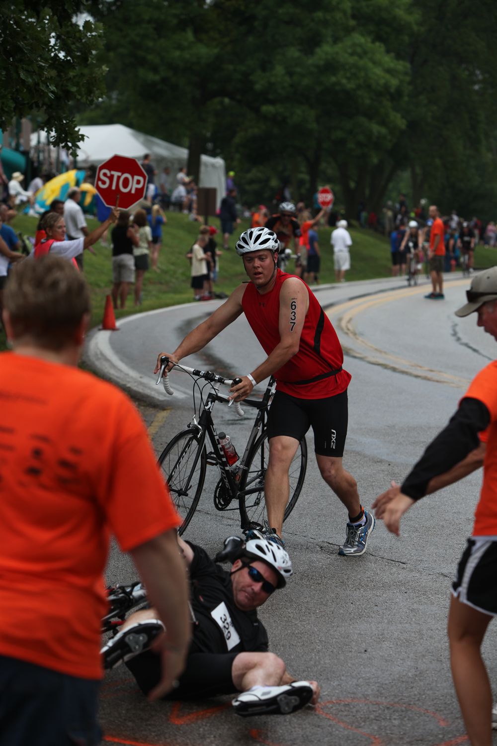 Comments: I took this transition intentionally slow. After the swim I needed to gather myself a bit, and since it was my first tri I wanted to be doubly sure I wasn't forgetting anything. The fact that all of my gear was wet didn't help things, either. Got my socks on, shoes on and double-knotted, shirt on, helmet on, race belt on (wanted to do this so I'd have less to worry about in T2), bike off the rack and headed towards the exit without too much trouble really, just at a very methodical pace. What would you do differently?: Certainly I can gain an easy 90 seconds here, but I'm glad I was able to keep a cool head and not try and rush things here and make a silly mistake. ![]() Bike