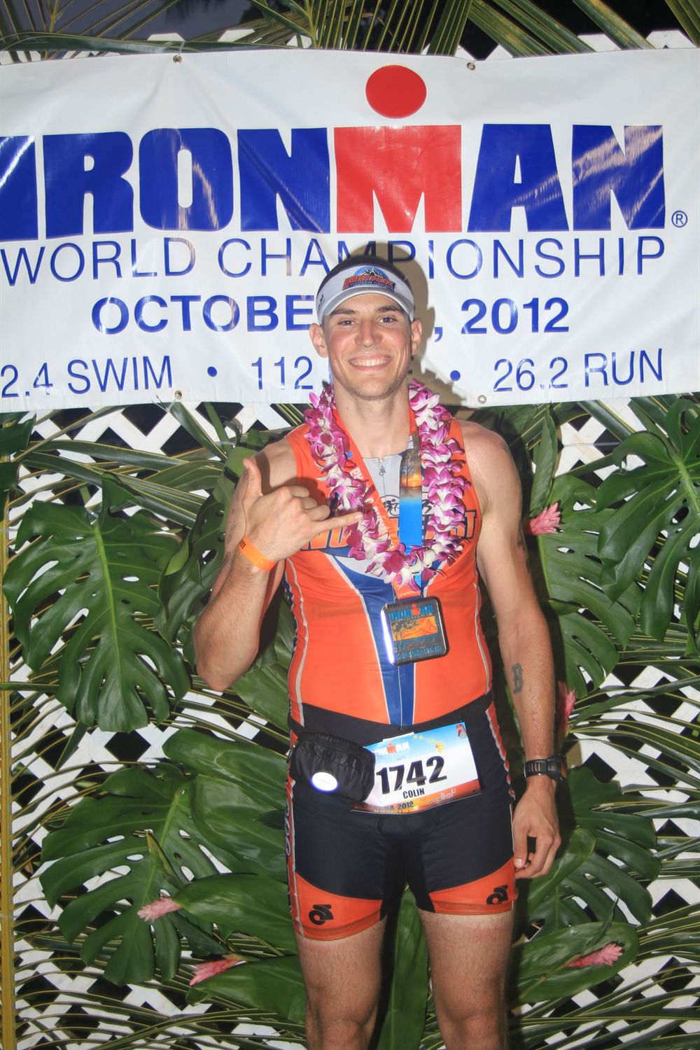 Comments: As I mentioned, I felt good in T2 and had a feeling I was going to have a good run. As I headed out of T2, I saw my Mom again. I asked her where my wife Kristen and my Dad were and she said they were getting something to eat. It would have been nice to see them, but I'm sure glad I saw my Mom. My stomach felt great and my cadence was good as I headed out. I had to do my best to slow myself down as I got going. I would look down and would be doing around a 7 min pace which was far too aggressive for my first trip to the island. My goal was 8+ min miles to start and see how everything was going. I really wanted to make sure I didn't blow up, but at the same time, I wanted to be under 4hrs for my marathon. The first 10 miles or so were relatively uneventful. I really enjoyed the scenery along Alii Dr. and just did my best to control my pace. There were a few times when my stomach started to tighten up, but I just stepped back the pace a bit and it would settle. I drenched myself in as much water as I could at each aid station and was talking 2 cups of Perform at each aid station as well as some water for the first 10 miles or so. I ran about half way up the Palani hill, but decided to walk the rest. Its a pretty steep climb and figured I would be better off with that approach. The crowd support was fantastic up until this point, but once I got back out on the Queen K, pretty much the only support you saw was at the aid stations, which were fantastic at each aid station by the way. I was feeling really good at this point, but just stuck to the same pace and would walk while I took in my nutrition at the aid stations. At around mile 11 or 12, I did switch over to drinking coke as opposed to Perform at each aid station the rest of the way. As we started to approach the energy lab, my legs started to feel a bit more tired, but I really had no complaints. I just kept moving along. As I headed back out of the energy lab, I stopped and peed. The Queen seemed pretty long both on the out and the back, but I just kept focusing on running from aid station to aid station. As I approached my 23, I started to get pretty excited and knew that I was going to be able to finish the race strong. I was smiling from ear to ear and got a lot of comments on my smile. I saw Kristen and my parents with about a mile to go and they told me they'd see me at the finish line. As I took the right onto Alii Dr. my smile got even bigger. However, running down Alii/the finishing chute seemed way different than TV. Nonetheless, I just kept smiling and high fiving the crowd. There were a few people in front of my that I probably could have passed, but I wanted to cross the line on my own. It was extremely excited to cross the line! I did it! I had qualified and competed in the Ironman World Championships in Hawaii, a goal I had now for about 4 years or so. It felt awesome and was definitely an amazing experience. What would you do differently?: I could have pushed a bit more on the run, but I just wanted to complete this race and try to enjoy as much of it as I could. My mile splits were very consistent, which is what I wanted. ![]() Post race