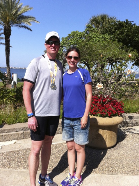 Comments: Since January I've had very bad IT band issues limiting me to no running for 8 weeks and then short distances of 1-2 miles 3-4 weeks from this race. Because of this my plan was to take it very easy and run at about a 11:30 pace and walk every aid station to make sure I was getting plenty of liquid and didn't have any IT Band issues. I stuck to this plan for the first 8 miles and felt pretty strong. At mile 8 I began to get way over heated and I could also really feel my lack of run training take effect. At this point I knew I would finish even if I had to walk the last 4 miles so I decided to walk/jog the remaining 4 miles of the course. These last 4 miles were the toughest thing I've ever done and I had to do a serious gut check to get through them. I knew that I had family and friends tracking me online and that really helped me get through it. Before I knew it I was at the end and somehow squeezed one last burst of energy sprinted the last 200 yards to the finish. It was amazing crossing the finish line and then turning to see my wife smiling at me. What an amazing experience! ![]() Post race