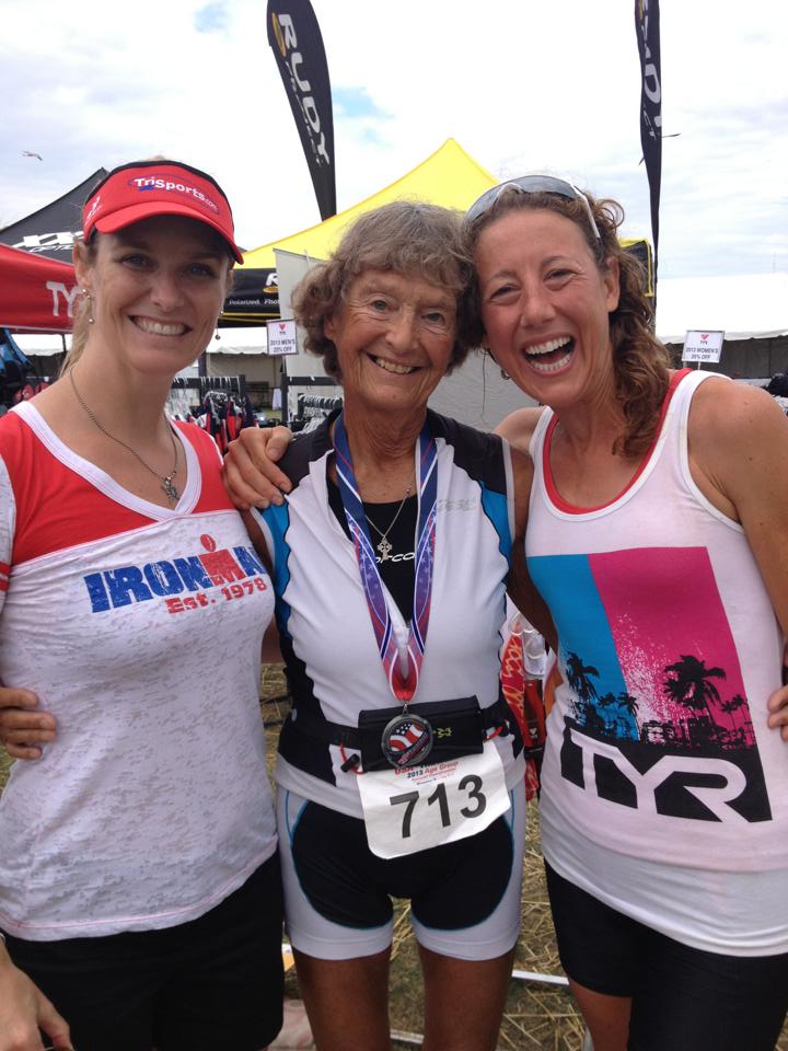 OH CRAP - it's 8:15!! So much for getting to the race early. Okay, first... coffee. Priorities here, people! And coffee is essential to life. Whew - Starbucks IN our hotel so no need to panic and then off to the race site where we find Whizzz, go yell for the Dumpster ever place we plausibly can, find Terri who is volunteering at one of the crosswalks, and chase wieners. No, I'm not kidding about the last one! I also got to see cgregg cross the line, Switch on the run and the Schmizers once Scott was done. There was also a Chrissy Wellington sighting, and we got to see Sister Madonna Buder cross the finish line, which was so inspiring.