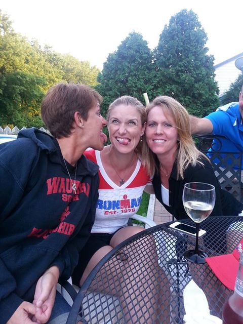 Okay, so this is where the decision-making part of the weekend may have gone out the faching window. It was SO much fun to hang out with Clint and Terri & Amy Jo and Craig, and there was much silliness and a ridiculously big bottle of wine. Note to self... don't ever have dinner with a bunch of friends when they're not racing the next day. And don't ever believe them when they tell you to have more wine because "it's ONLY a sprint". And don't ever believe that you can have more wine because "Clint raced a half still drunk". These people are clearly evil as they are not racing the next day. ;)