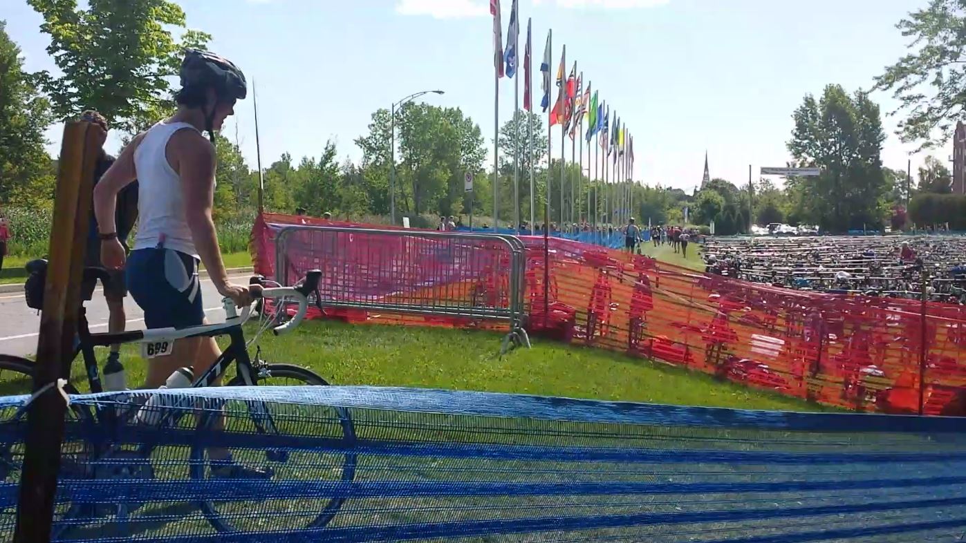 Comments: A very nice bike course, packed with volunteers, cheering fans and police cars at intersections. A section of the course was not closed to traffic but it went well. Not a hilly course but some ups and downs. Legs were numb after the swim, it took a couple of kms to wake them up. Almost at the end instead of doing a complete out and back we to a right and went down Chemin Southière. I hit 71.2 km/hour Wheeeeeeeeeeee! Loved it!!! I took one gel at 3/4 of the course, drank a little but both my bottles were almost full when I came back. I feel this was perfect for me. What would you do differently?: I think I paced well. I feel I could have pushed more, but as you'll see further on I'm not a runner so I was trying to save some for the run. So I guess maybe push harder next time, just to see :) ![]() Transition 2
