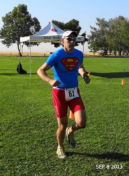 Comments: This run was hard. I had to get water for a very parched throat at both aid stations on the run (run start and just after the turnaround). I did manage to pass a couple people, but had a couple pass me too. The pace was about all I had in me on this day. ![]() Post race