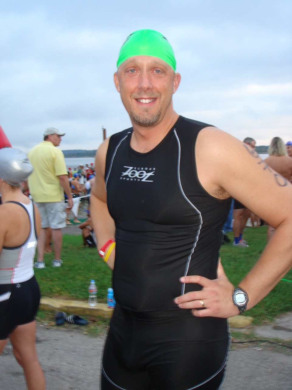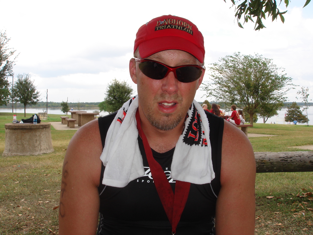 Comments: I came out of transition looking for a race official to hand my number too and drop out of the race for the first time in my life. Instead, I saw my wife and a group of my friends. I stopped to say I was done but they kept yelling at me to keep going and see how I felt after 1 lap. I turned around and kept going. The run through the park was surreal, there was so many people cheering, spraying water, and handing out wet spoonges. That bit of recovery got me to the park gate and then I had to hit the rolling hills. I knew at that point that I would not get my running legs any time soon, so I walked the uphills and tried to run the flats (not many on this course) and run down hills. I started seeing friends on the course and it made a difference. The section of road right outside the park was brutal with the sun out. The heat was really bad and made a hard day even harder. At the first aid station, I stopped and grabbed 10 salt tablets, gateraide, water and ice and walked up that hill into the Expo center. The next 3 miles were in the direct sun and rolling hills. All I could do was run for 1 minute at a time until I started cramping again. Of course, everytime I walked, I saw someone I knew. John (jcagg90) busted me on the way out the first time. The first 4 miles seemed to take forever, and I had made my mind up that I was going to drop out when I got back to the park before finishing the 1st lap. Kari (my wife) met me outside the park and walked with me up the hill asking if I was ok. I told her I was done and needed to get to the Medical tent. One of the volunteers stopped her at the gate and would not let her through on the course, so I kept moving forward towards the transition area and the Med tent. The crowd was louder coming back than I remembered on the way out, so I tried to shuffle and get moving. I don't know if it was the adrenaline of the crowd or if that walk break gave me some recovery but I felt a little better and moved through the park, still looking for the Med tent, but with the intent of continuing unless I found a medic. I never saw anyone that I thought could help so I passed the finishline/transition area and headed out on the 3 mile loop in the park. The run down the big hill was encouraging since, in all previous triathlons at this park, we go up. At the bottom of the hill was the best aid station with a guy dressed as Elvis in black leather pants and long sleeved black shirt and matching black wig. I thought I was hot. That guy must have been on fire. I did notice that the whole field in that section was all ragweed. So, if anyone else is having congestion issues today, you know were you got it from. The hill going up from the bottom of the ragweed forest sucked. This was the same hill that I saw that pro walking. So, I walked too. No cramps going up but I was beat when I got to the top. I finished the first lap and had a real mental battle to go out on the second lap and not stop. I still don't know why I didn't stop. I guess after that much time suffereing, it just wasn't worth stopping. I knew I would not break 6 hours at this Half and now I had a real danger of not breaking 7 hours at the pace I was at. I continued to take in sodium and pour water on my head and eat ice. It worked for the 5-10 seconds that I had the ice and water but then the searing heat came back and it was just a long, slow, slog. On a positive note, I saw so many people that I know out on the course (John, Marcy, Mike, Jamie). My buddy, Richard Freer, was first off the bike and leading the race through 8 miles on the run, when he pulled out. He is doing IMFL in 3 weeks and wanted to do this race as a "tune-up". I think his engine is tuned now. The run course is bruatlly hilly and hard (weather was 50% of it) but it's a great course for support. The aid stations were incredible and well stocked, even late into the race. The second time through was tougher than the first. The cramps were coming in waves and nothing seemed to help except shuffling at a slow pace. I could not get up the hills at a shuffle so I had to walk. On the second go through the park I pulled up along side a guy in his 50's who was having a hard day as well. We talked for the next several miles and the next thing I knew, I had passed through the finish line area again without quiting. The trip through the ragweed forest was even hotter the second time. I let the aid stations know that they were the best one on the course, but that I had no plans on coming by them again. The long haul up the big hill was lonely as I seemed to have lost my walking companion. At the top, I had one of the most involuntary physical reactions that I have ever had in my life. I was walking along, after just getting to the top thinking that I had just 2 miles to go and then I convulsed and hurled striaght into the air ahead of me, letting go of everything in my stomach, including all the liquid and sodium tablets that I downed. It was gross but impressive at the same time. I didn't feel it coming and I didn't have any adverse feeling afterwards. It just came up violently and shot out about 5 feet like a fire hose being turned on for 2-3 seconds. I felt better after that but still had 2 miles to go and could not stop random cramping. My hands were even cramping so much I had a hard time holding water cups. I don't remember the finish line much but I do remember walking past my wife after the finishers shoot and going directly to the Med tent. I walked over and just bent down waiting for someone to help. What would you do differently?: I still can't decide if a DNF would have been better than pushing through. ![]() Post race