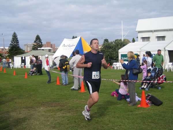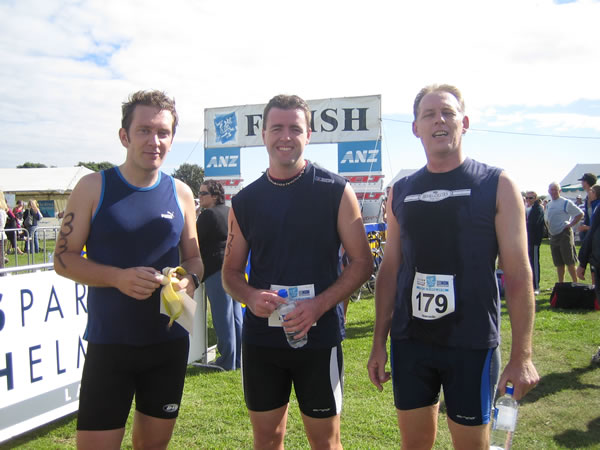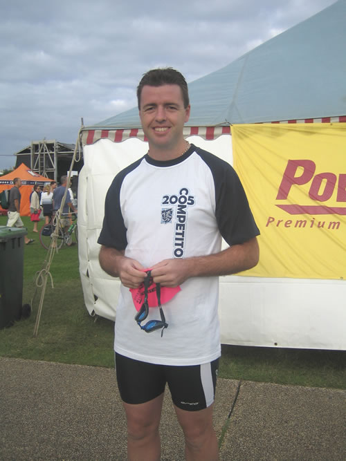 Comments: To be honest, it felt like a struggle, but as is quite often the case with me, the runs that feel the worse tend to be the best in terms of time. Time for this leg is a PB for me!! including training, so the event obviously pushed me along. In hindsight quite happy, different than the feeling straight after the race. What would you do differently?: Push a little harder in the middle third of the run.  Post race Warm down: Lots of smiles, oranges and water with some light stretching. Made use of the free massage facility which was great. What limited your ability to perform faster: Lack of training on the bike and the ability to swim straight (and faster) really were the two main things. Event comments: What an experience!! ... had a ball and really enjoyed the whole event atmosphere. Funnily enough, I had always stated to friends that my aim was to finish in the top 100 (even though I thought that was a bit optimistic for my first) ... where did I finish? ... 100th!! ... well there you go! Some aspects of my race could have been better, but hey!! .. it is my first and I hope not my last so no need to complain. If only I had done this early in the tri season, as most events are now finished, I will now have to work towards next season. Thanks to everyone who has "Inspired me" through the year, had a great time and seems the tri-bug has bitten once again!! You can view some piccies of me and my two workmates who roped me into this below :) or full size with comments in my Album. Last updated: 2004-11-29  12:00 AM |