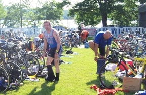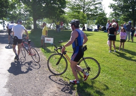 Warm down: Hung out with bters, cheered on people coming into the chute. Got to meet and hang with a lot of BTer's at this race, I love that. boyddr, 1sttimetri, shane, mcole158 and his dad, shanec_75 (who's back from a serious illness) and lots more. One thing I love is during a race when some people see the tri-suit and yell out "BT!!" particularly when I don't know them. That just makes my race. What limited your ability to perform faster: The usual inconsistent training in the previous couple months. No taper at all. I had hard workouts in all 3 sports in the 3 days before this race. Event comments: This is classic Finger Lakes region racing. A nice lake swim, some good climbs on the bike and nice views on the run. Another great job by Score-This. They put on a great race and I really like the new bike racking method. One of the great things about this race is the food. Access to the college cafeteria is just awesome. Last updated: 2007-06-05 12:00 AM