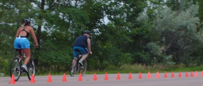 Comments: T-1 began the way that ensures I will have a slow T-1 time, with a run! We ran up the beach, across a bridge, up a cement path (most of us cut through the grass), and into the cement T-1 area (little rocks are love!). My bike was near the front, but on the inside of the racks. I plopped down on my butt, dipped my feet in my tupperware container of water, and then quickly dried them off with my extra towel. I threw on my socks (thank god for you Thorlos running socks!) and then my shoes. The lock laces worked great this time since I took a few seconds to get everything nice and tight. T-shirt on, helmet on, I took a swig of gatorade and off I went. On the way out I waved to my adoring fans (aka family). What would you do differently?: Run faster from the beach? The time might have been slow but I felt like I didn't waste any time. ![]() Bike