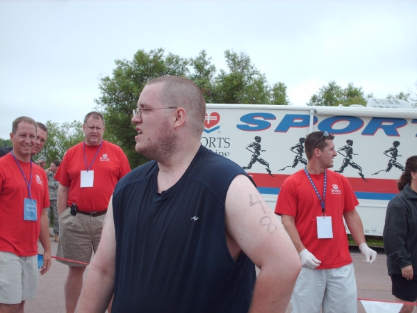 Comments: I jogged out of the finish line area, and some random group of people screamed, "Go Josh.", so I guess I might have a fanclub who isn't my family eh? I got to the top of the incline and started to walk for a few minutes. My calves were cramping slightly. I knew that I had done everything right on nutrition and hydration, so after I got passed by the first group of fast runners who were on their way back, I started jogging. I jogged, and I jogged, and I jogged. I like to think I 'run', but really I jog.. or shuffle.. or waddle fast. However, last week I definately walked more than I jogged, this week I walked MAYBE .25 miles, and jogged the rest. This was just a remarkable improvement from last week. As I jogged I noticed that a few people were still behind me! I resisted the temptation to get excited and told myself to run my race. After I got my mind right it didn't bother me when people passed me, in fact I was sure I was last at the turn-around, but I was still jogging. Low and behold an older gentleman is behind me. I knew by his pace and stride that he would catch me, but I didn't care. I took a couple of minutes to take joy in the fact that I had held off last place until after the turnaround. He would pass me with .9 miles left to go, though he did slow down to cheer me on and talk about the nice weather we were having. I hope to god I'm that awesome when I'm 77. He took off and felt my body just relax. I knew I could jog the rest, and I knew I had beat my time from last week. Apparently I was really relaxed, because I managed to go pee without breaking stride. Yes, I meant to, and I know it may sound gross, but I really wanted to beat my last week's time and I had to pee since back in the water (see above). I take that as a good sign that my run wasn't some insane slave-driving expedition, but more mind over matter. I kind of wished I had water to wash off with, but the finish line was close. I finished my polar bottle of gatorade (nice and cool) with the finish line in sight. I picked up my pace as I heard Kathy Grady (my swim coach and the RD for this race) yell out my name over the speaker phone. I could hear the crowd at the finish line cheering! This was a MUCH bigger finish line crowd than last week. The clock came into sight and it had a 1 on the front. I was in awe, then I saw the second number was a 4. I knew at that point that I had to leave it all out on the road, because if I could come in under 1:50 (2:00 was my goal) then I would just be ecstatic. I broke into full on sprint mode for at least the last .25 miles, and crossed the finish line at 1:47:44. I stayed at the finish line to cheer on the one person left on the course. Yep, that is right. I DID NOT FINISH LAST! I'm already moving up in the rankings after only a single race. I felt like Rocky. What would you do differently?: I really need to get more miles logged running, and I think as the weight continues to go down that will be easier. ![]() Post race
