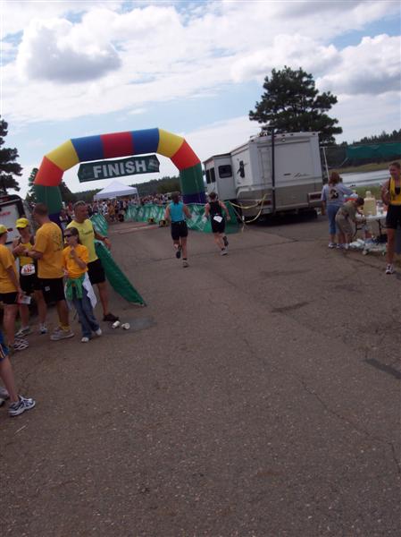 Comments: It was about a 1.2 mile straight away until you have to turn a corner and climb up a mountain switch back. It's like a 10% grade or some crap. As I am mentally telling myself that up there at the top it turns and will be flat again, I look over my left shoulder and eye the next switch back which is even longer!! "Holy Sh*t!" just flew out of my mouth. I think it's about 1.5 miles up this straight uphill crap. Then a little trail run and a turn around. Going back down the switch back was much better!!! My knee was holding up, but I was suffering from lack of running these past 3 months while trying to let my knee heal. As I got to the bottom and knew I had just over a mile to go, I checked my watch and knew I could not make my 3 hour goal. BUT, I could see how close I could come to it. So I hammered down and really pushed. There was a girl in front of me who I had been watching since decending the hill. She was pretty far in front of me, but I thought if I used her as my rabbit I could maybe catch her. As we rounded the driveway to the finish I see that if I really pour on the power I can sprint her down and just pass her before the finish. She had no idea I was coming up on her. I think it was a good move because in the standings the woman right behind me in my age group finished 3 seconds after me, so that had to have been her. Her age had rubbed off her leg, so I had no idea she was in my AG. Cool!!! What would you do differently?: Had better run fitness. Since my knee is almost 100% I need to really start focusing on my running, and building back up that speed and edurance I used to have. ![]() Post race