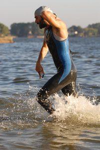 Got back and Body Glided my wetsuit before climbing in and dropping off my T2 and dry clothes bags. Headed down to the shore and did a quick swim to get a feel for the water. It wasn't as cold as I was expecting so that was a relief.