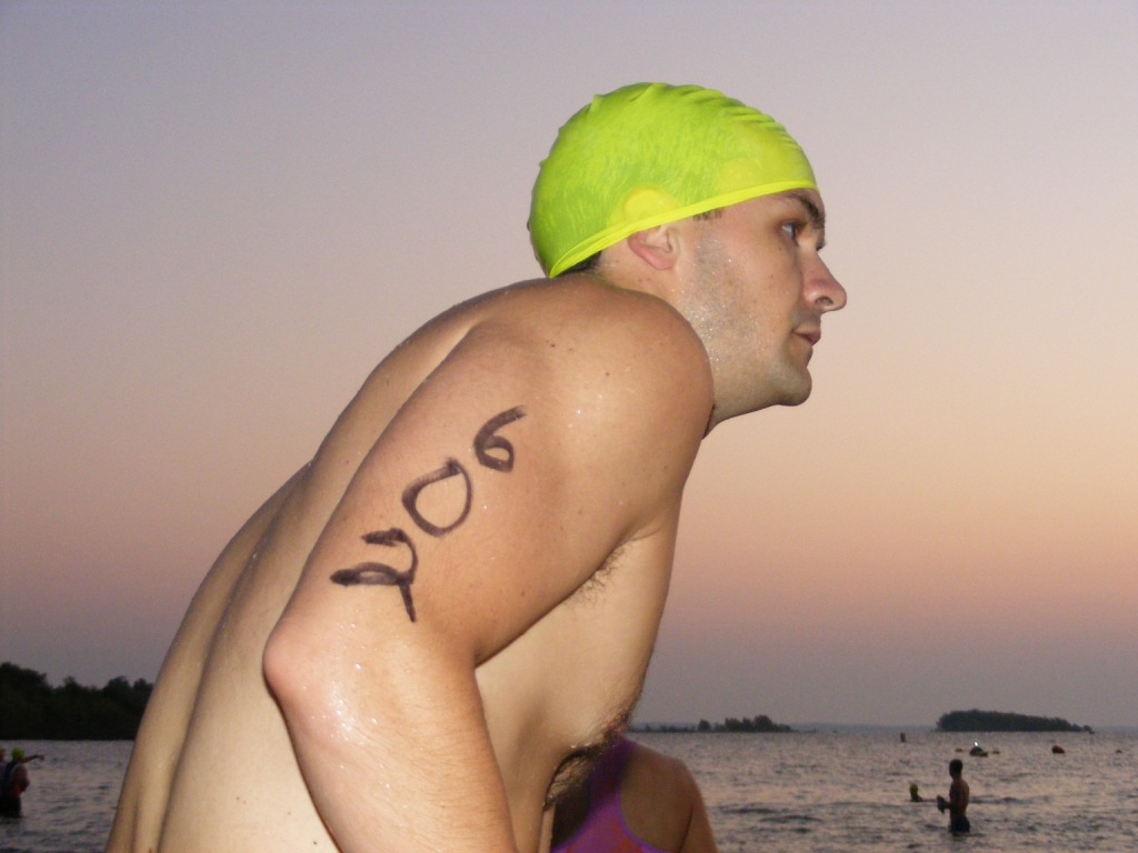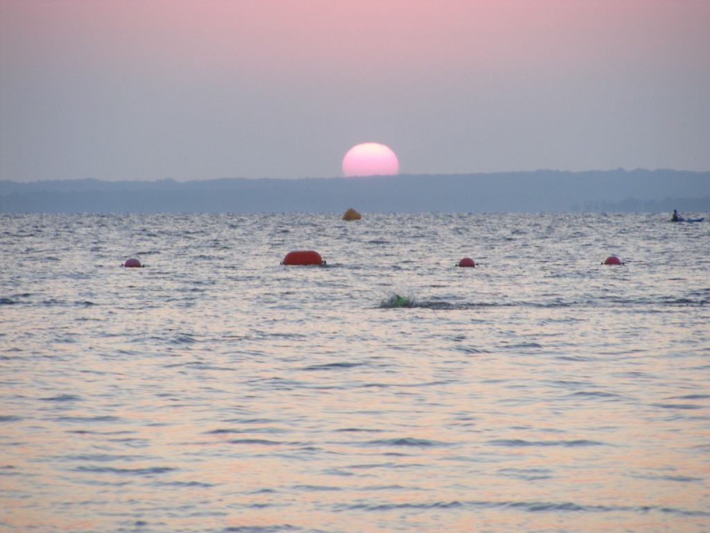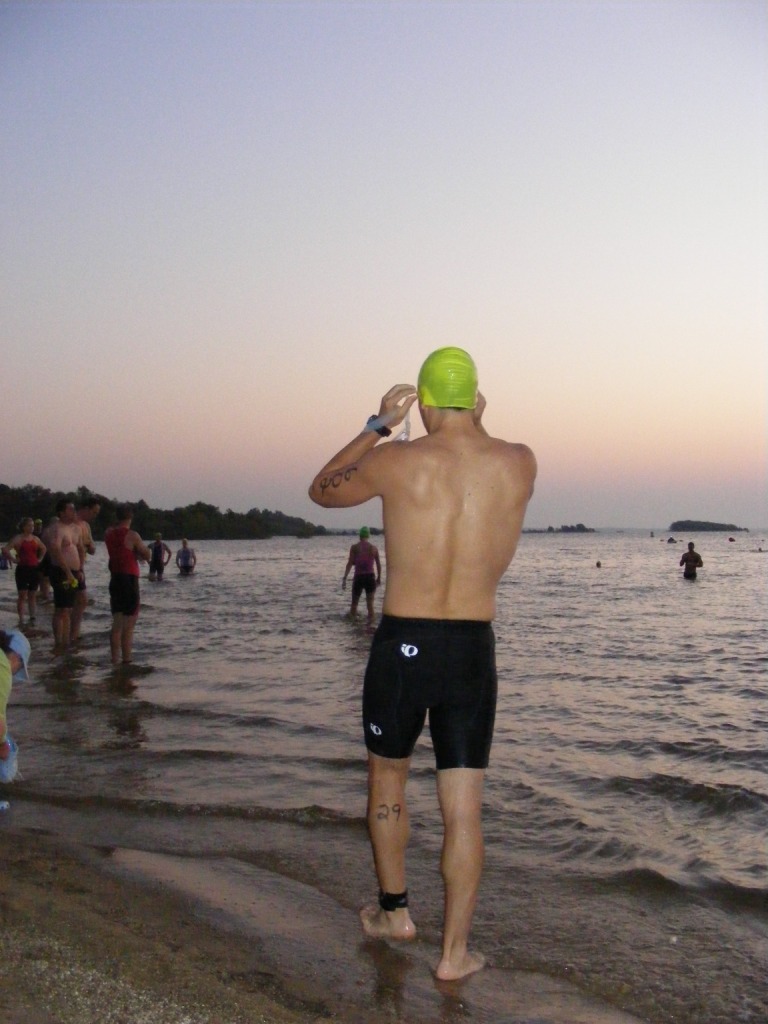 I didn't get to stretch or run at all (eventually I'll learn my lesson and get to a race early). I took a few strokes in the water and waited for the start.