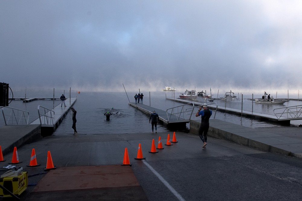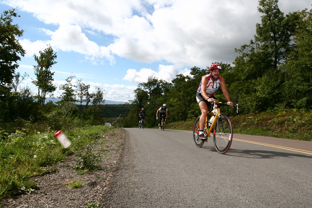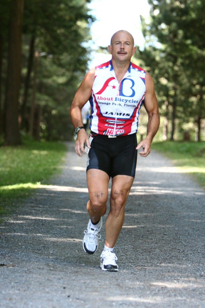 Event comments: Every year for the last few years I've resolved to do something stupid to commemorate my birthday. Last year it was Six Gap. This year I looked around and hey..I heard talk about this "Savageman" race that was supposed to have the toughest course ever for a half ironman. That sounded like just the sort of masochistic foolishness I was after. For the curious, take a look at www.savagemantri.org: Wet suit swim in a rapidly cooling lake in fall. Bike course with 6,000 feet of climbing and the 25% grade Westernport Wall (videos of people falling over are on the web site...). Run course up and down rocky, boulder strewn trails. Even better, I had a work conference in Baltimore that would pay for my travel. I signed up. I arrived the night before the race to hear the mandatory pre-race briefing. The park and surroundings were gorgeous. The race director told us that the morning weather forecast called for a clear day...and 37 degree air temps at the start. I started to wonder if I was going to survive the swim in my $50 shorty wet suit. We got lots of warnings about the dangerous bike course and tales of crashes during pre-rides. The only part of the race I figured wasn't dangerous was the run, mostly because I'd be moving too slowly to be in trouble. Race day dawned clear and cold. I scraped ice off of the windshield, shivering, and went to Denny's for breakfast. Arrived at the park, set up transition and underwent the most thorough bike inspection ever. They were serious about making sure your bike would stop and that parts weren't about to fly off. Sat in the car shivering some more with the heater on. The swim: The swim start was surreal; steam rising off the water, fog obscuring the opposite shore, boat lights and kayakers just visible as they set out to patrol. I was encouraged when the first two waves waded into the water and I didn't hear any high pitched screaming. When it was my turn, the water actually felt warm in comparison to the air. I swam out to the dock end, the horn sounded, and we were off! I couldn't see a buoy anywhere, but I knew that the course went along the shoreline and that a kayaker would be at the turn around point. I did hit a buoy with my head, and a returning swimmer from the elite wave hit me going back in the other direction. Eventually, I saw the kayaker and he pointed me to the last buoy. Repeated this process heading back, and came out of the water in 43 and change, respectable for me. I stopped and got my windbreaker I'd stashed at the swim exit, ran up the steps to the transition area, and took my time stripping the wet suit, toweling off, and putting a bike jersey on. Bike course: This was the centerpiece of the race, and rightly so. The volunteers were plentiful, cheerful, and the scenery was gorgeous. Rural mountain roads, farms, forest, and some great views. Some short climbs in the first few miles led to a twisty, technical descent at about mile six. I blew down this at warp speed, knowing that I should slow down but loving the feeling too much to do so. At about 18 miles, the town of Westernport came into view. It's a small town, basically built into the side of a mountain. We crossed a special timing mat to clock our "climb split". Left turn into town, and look up, and up...the road steepened and you could see what looked like half the town out to spectate on the short 25% grade section known as the "Westernport Wall". I was riding my road bike with an 11-32 mountain bike cogset and derailleur, just for this, and I needed every bit of it. I was popping 6" wheelies with every pedal stroke. I made it up the wall, wheezing, and headed up toward the top of the Eastern Continental Divide. This climb is 6.5 miles long with 1730 net feet of elevation gain, and has a short descent in the middle so that the total climbing is probably more like 2k+ feet. It took me 48:39 to climb this, for an average speed of 8.02 mph. :) The fastest climb was done by duathlete Josh Beck, who averaged nearly 12 mph. Studly! I can't forget the descent from Big Savage mountain, as well. We were given all sorts of warnings and I knew that I should be careful. The descent was basically a series of switchbacks through forest, impossible to see the next corner ahead of time. I made it most of the way down, and took a couple of corners riding the brakes behind a guy who was riding the middle of the road. On one corner, he went wide, and after telling him I was coming through, I passed him. I looked back before the next corner to make sure I wasn't in his line, and as luck would have it, it was probably the worst one, an off camber, steep hairpin. I braked hard, almost made it, and skidded the front wheel off the road and into the ditch. Slow motion endo and I'm on my back on the side of the road. I got up, dusted myself off, checked the bike over, and kept going. OK, fine, the big climb's over, can I lay down now? Ha...it never let up. In fact, I think some of the shorter, steeper climbs later in the race were worse. I remember standing up in my easiest gear at about mile 51, going 4 mph and mumbling "You have got to be kidding me...". I came in from the bike course feeling pretty decent, all things considered. It was almost impossible to go really easy on this bike course, but I had tried. I have run very, very little in the last month or two due to some calf issues, and this race was going to double my run mileage for the month. :) The results say I spent 11 minutes in T2. I have no idea how. I remember rinsing off the road rash on my shoulder, digging into my bag to see if I had another shirt, and trying to get the gel glop out of my jersey pocket. I set off to run, with the not so lofty goal of ten minute mile pace; I'd looked at my watch and knew that's what it would take to break 7 hours (ha!). No real drama to report here; this was a two lap run that featured a steep climb up a rocky trail, and I walked a section of this each lap. The downhills on gravel wer