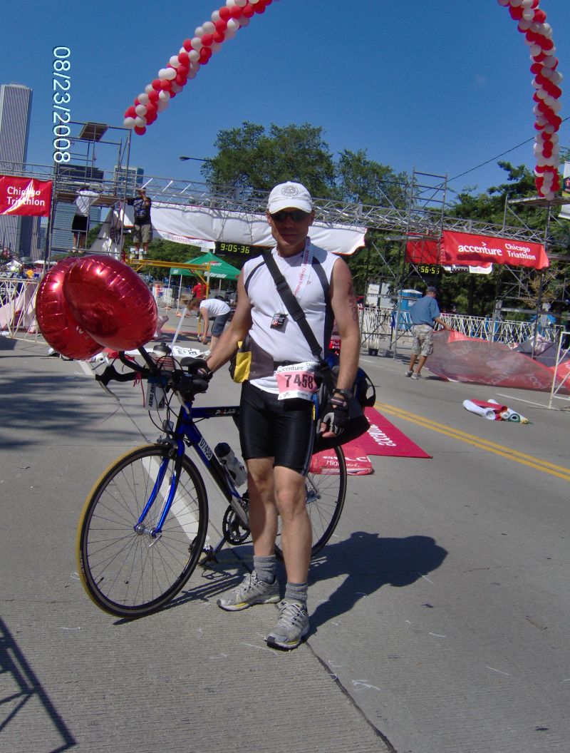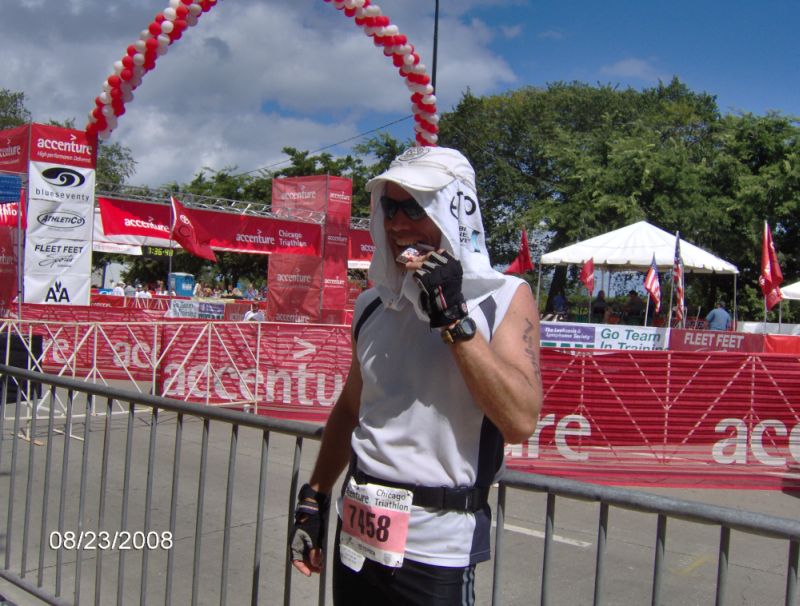 Comments: From the transition we started on a ramp up, small chainring, then as we hit the Lake Shore still easy spinning but in the big chainring. Tried to go really conservatively even for me and I guess it worked. Still passed lots of people, but the fast guys were flying by too. Lots of potholes, cracks, bumps etc, bottles on course and slow riders going too far to the right. Spectacular scenery though with the fans on the side, like TT of TdF... OK, maybe not, but still great energy around. This part went really quickly and I felt like riding more. Maybe because I've been along this route so many times I knew every turn and bridge, the mind didn't have to work overtime. Spent all the time against the wind in aero and some of the downwind part too. The tricky part was - it was so incredibly bumpy and aero just didn't work, specially when going faster. What would you do differently?: Maybe I should have brought my mountain bike instead... ![]() Transition 2