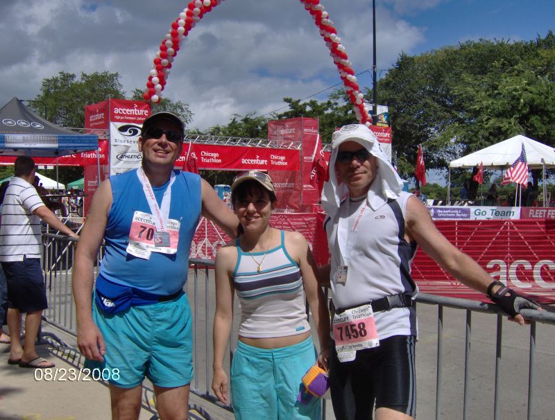 Comments: The legs felt fine after the bike, no problem at all. Was a bit careful at first thinking the quads might not like it, but no, everything worked just fine. As it was hot and sunny now I decided to save my energy at the beginning and didn't try to be a hero. Still was passing some runners and felt quite good. Again, this is the path I have run most of all my running and knew every bump in the road. People around looked really tired and sweat was literally pouring from most of them. At this point I decided not to go faster at all and just enjoy the day with my family afterwards. After all it would only save a couple of minutes if any. I still had to play with the baby, go to a post race party, have few beers, have some fun with others and walk back home with the bike and the bag. And so we were all trotting along the lake, sweating and drinking happily and time just went by. Soon the turnaround point came and now it was the last part of the race. The pace was still the same, no walking at all, slowed down only once to get some water (I had 24oz bottle with me with 2 gels dissolved and some lemon juice and that was working fine). Soon we entered into the last stretch, tons of people around, cowbells, cheering, the works... I sped up to an all out sprint and passed all the people in sight like never before (true!) The announcer called every runner passing the finish line by the name and sometimes made some funny comments, which felt nice. Picked up the medal, some bananas, water and a wet towel. What would you do differently?: Should have picked up two or more towels... ![]() Post race