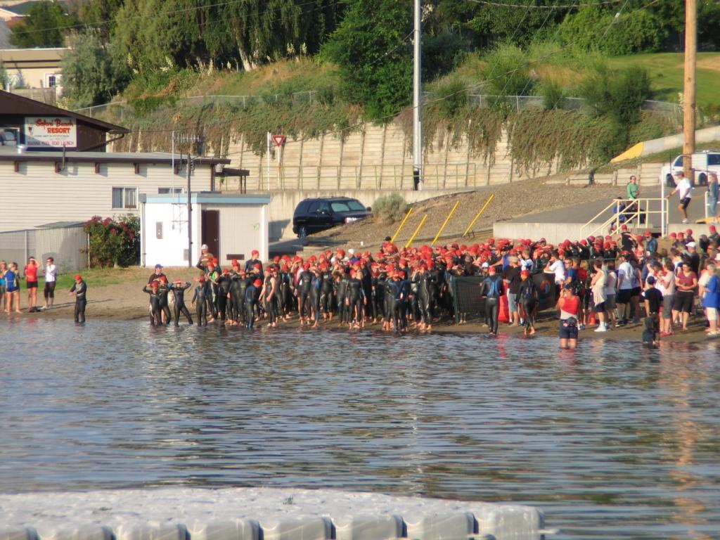 Setting up my stuff in transition and a quick swim in the lake before start.