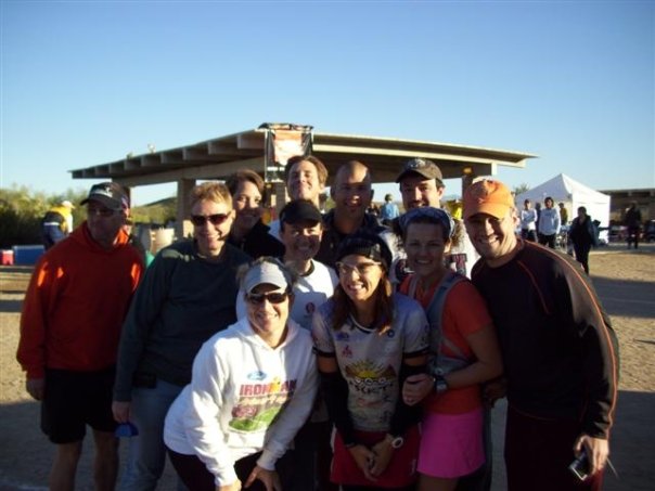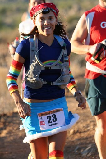 Comments: Flashback So it started all back in May. I got my new triathlon bike and devoted much of my training time to my weakness – biking. I wanted to do amazing at Mountain Man Half Ironman in Flagstaff, AZ, and I knew my strengths are swimming and biking. Well, Mountain Man HIM came, and I sucked. I felt like I had no power or energy. By the end of the race I was pissed off. Triathlon let me down – I gave it what I had, sometimes putting in 800-900 minutes a week, but what for? A crappy finish. I needed a break. So Monday morning I sat down at my computer and looked for the break I needed – an adventure. Triathlon is structured and regimented, but I need something that I could make my own. Lisa (Javamom) told me about Bob’s Javelina Jundred, and I was sold. I was joking all day back and forth with the sportybots (Josh and Jen) about crewing me. Little did anyone know that sometime in late July, Monday after Mountain Man, I sent a check away to Jamil, the race director. I had things to get over. Fears. First off was my fear of going on the trails alone. I’ve hiked with people, but the ONE time I decided to run on a trail alone, I nearly landed on a rattlesnake. Let’s see, there was that whole business of never running further than 18 miles in one chunk of time…no marathons…no 50Ks….no 50 milers…none. I was basically set up for failure, but I was excited and ready for a challenge. Training was something else. I started “marathon monday.” Most people save their longs stuff for the weekend, but I like to get mine over with. Plus, my “mom job” is pretty busy on the weekend, and the classes I teach can always wait until 1am (when I do most of my school work). So in 110 degree heat, off I went. I encountered a nasty man that told me I could NEVER run 100 miles on the training I was doing. It shook me. I even did a 7pm-7am self supported (well I had the cool kids) 50 miler, where I had some other man (perhaps someone who didn’t quite make it to the finish line at Javelina) tell me I was completely unprepared. Why do men like to do this? (on a side note, this is what I am writing my Master’s thesis on – how the physical education of women - in the late 18c- was dictated by scholarly men who urged women to do things like horseriding and walking, and thought that running was so unnatural for women, so much so that they looked like a bird…it gets more complex than this, but you all will hear more about it as I get closer to finishing). Flashforward The race came. I felt completely unprepared. Doubt and fear filled me the ENTIRE week before. Even at packet pick-up, I was a nervous wreck. Meeting the extremely friendly community of ultrarunners was calming. Much nicer than triathletes (I had some woman tell me horrible things at my first triathlon). Racemorning was surreal. Chris picked me up a dark thirty. Sandy was trailing behind (she was great all day and night, always wondering what I needed and helping me stick to nutrition plans…). Having Chris to talk to on race morning is always nice. I don’t know why, but he stokes me up…I guess I’ve always thought about him as some sort of coach (not the kind that gives you the training plans, but the kind that motivates you). We get to the race site, and I am so worried about getting my feet taped that I spent all morning waiting, but then, Jen’s knight in shining armour (Josh), shows up, and spends some time taping my feet. When the call goes out for 15 minutes, I head over to the bathroom and line up near the runners. I find Tony, Chris, and Susan…they would be great friends and great help for the first 35 miles. Lap 1 Starting this race was unreal. I was here, and I was finally ready. I think we all ran on pure adrenaline for the first lap. I tried really hard to stay with Tony, Chris, and Susan. I met Tony at packet pick-up and he seemed nice. We chatted mildly for the first section. I was mainly in awe of my surroundings. Not just the “nature” aspect, but the number of runners all in a line. I run alone…in the desert…in the middle of the day. Watching 30 runners follow each other up a hill…that was beautiful. I really don’t remember lap 1 that well. I think the “pack” (Tony, Chris, and Susan) got to know each other. I followed their plan…they were smarter than me, today wasn’t the day to act pompus or know-it-all. Oh, I remember that the innov8 shoes weren’t working for me…too narrow. So I changed shoes and socks and tried to hurry at camp…I had people waiting for me. Lap 2 I wore Montrail Wildwoods. Funny that I was sooo worried about not having the right shoe. I mean obsessive about this. I bought these a couple weeks before the race. Nope…not enough arch support. Looking forward, I did the entire rest of the race between the hardrocks that I bought for $5 and Jen’s pair of the same shoes. Enough shoes talk. It was getting hot out there. And I was in company that I had no business being with…both Tony and Susan were going for sub 24 hours. Chris was hoping to finish – oh and he does triathlons too. He did an Ironman. I looked like an endurance dwarf in the middle of these people. I knew at any point in time they were gonna drop me. As we began lap 2, I was struggling. Here’s where I hit a low. I thought that if I was struggling at lap 2, then, what am I gonna be doing at lap 7? I shuffle along, quiet, but freaking out. At the first aid station, Tim from Tucson ran by me…yep he was one of those men that doubted me (secret goal…BEAT HIM). At some point the heat started to get to Chris. I think (and I don’t know if I am remembering correctly) Tony and I were running together for a long time and Susan would normally catch up on our walks. Oh I forgot about the crazy man that was dancing and singing. It was awesome. He had his IPOD on and was jamming. We kept trying to figure out what he was singing. Maybe something manly like Metallica, but I bet it was more li
