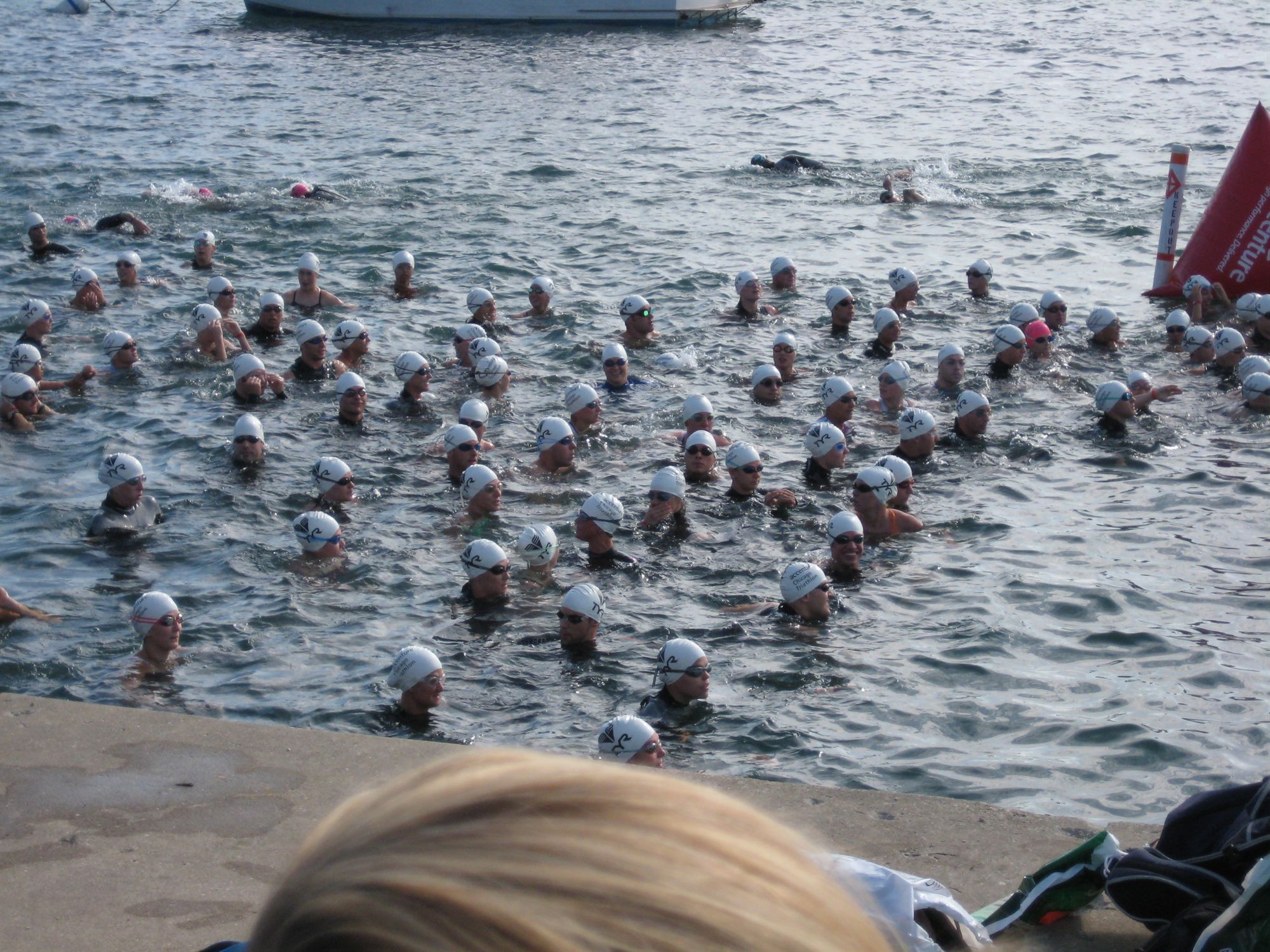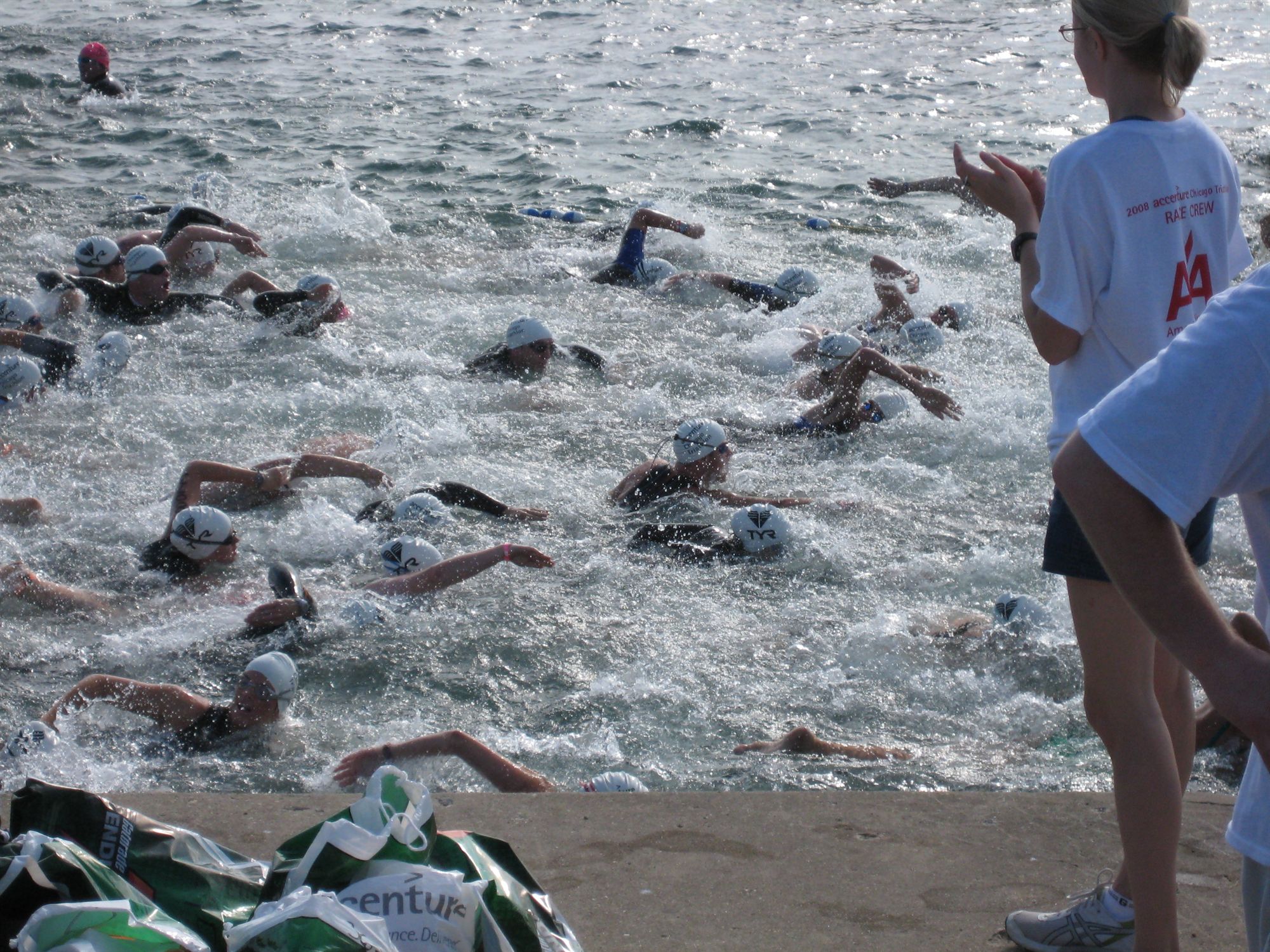 Rode my bike down to the transition area, about a 25 min ride. Great warmup, but my wave didn't go off for another 5 hours, so I don't know what good it did me by that point.