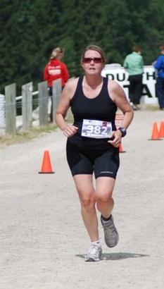 Felt good on first half of course. Rode the big gear but didn't really pass anyone. Was passed by a number of older riders which I find amazing and hope that when I'm 60 - I'm whizzing by people in their 30s. About 18km into it I started to fade. I didn't bring anything on the bike to give me a boost. Headwind started to slow me down. Then this woman came up alongside and we were chatting about the wind change - I told her I was fading - and she handed me half her Powerbar! Such kindness. I devoured it, took some water and started to feel better. Last stretch it started to drizzle but I felt great and got my speed up to 33km and sped past a number of riders. Passed the generous woman and thanked her. Closer to the end of the race she rode alongside and said "Well I kept one for myself too!" and then continued on ahead of me. I smiled "You go for it!" and followed her to the dismount. Bike course was beautiful - country fields.