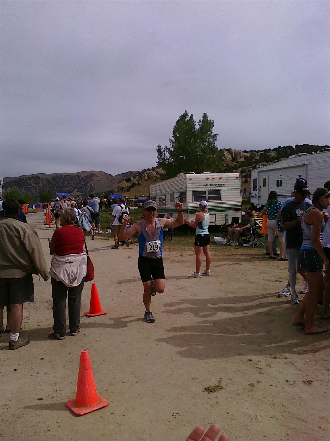 My warmup consisted of a ride from the parking lot to the venue(probably a couple of miles.) And then just before the start I swam maybe fifty to a hundred yards (lame, I know) My brain was in "you gotta save it all for the race" mode.
